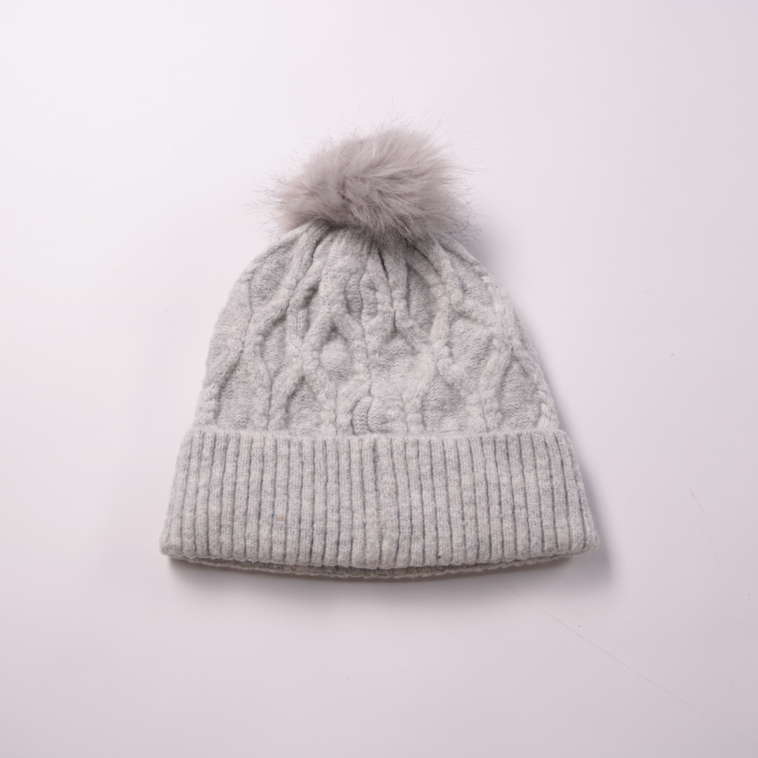 Вязаная шапка George серого цвета с объёмным помпоном и отворотом. Подойдёт для зимних прогулок и повседневной носки, хорошо сочетается с пуховиками и пальто. Мягкая подкладка делает её более тёплой и комфортной в ветреную погоду.