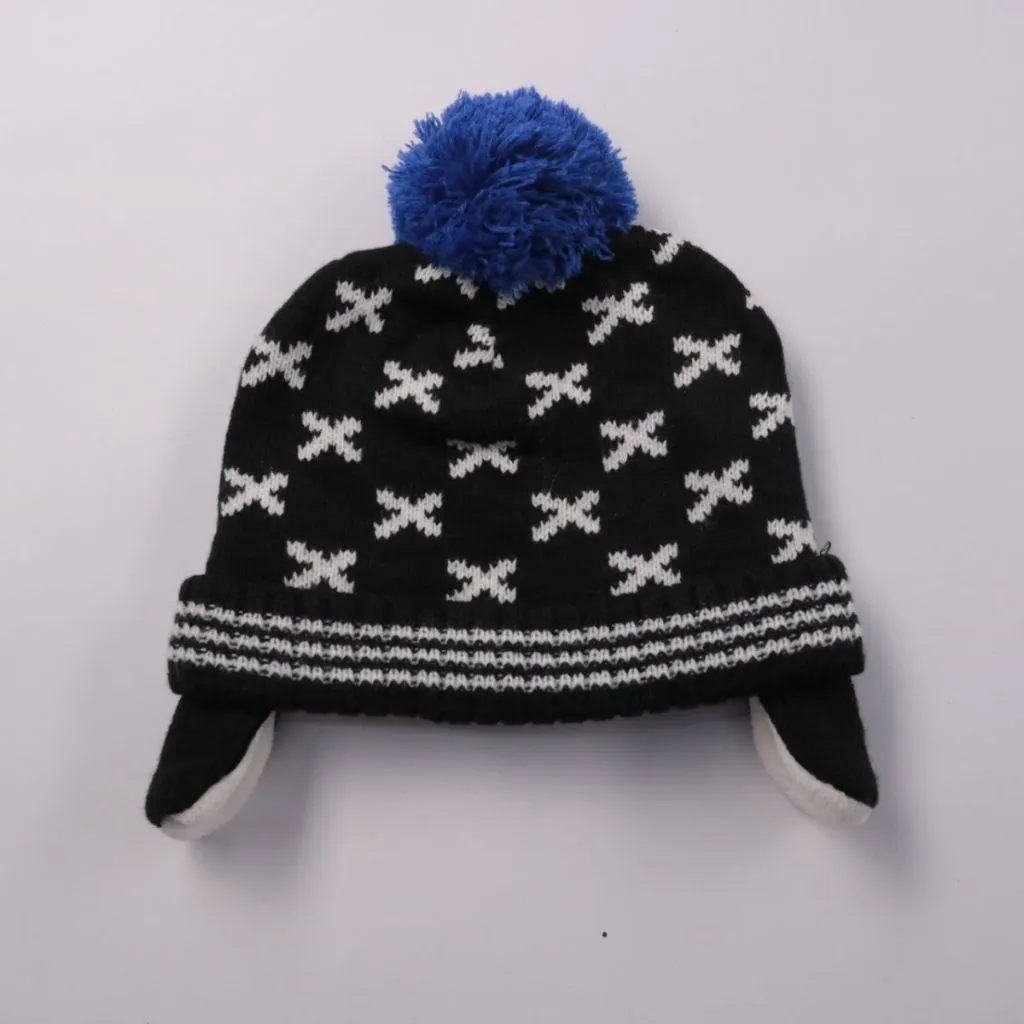 Вязаная шапка HEMA с помпоном и ушками, чёрная с белым узором. Подойдёт для зимних прогулок и активных игр на улице, внутри мягкая подкладка. Хорошо закрывает уши и защищает от ветра.