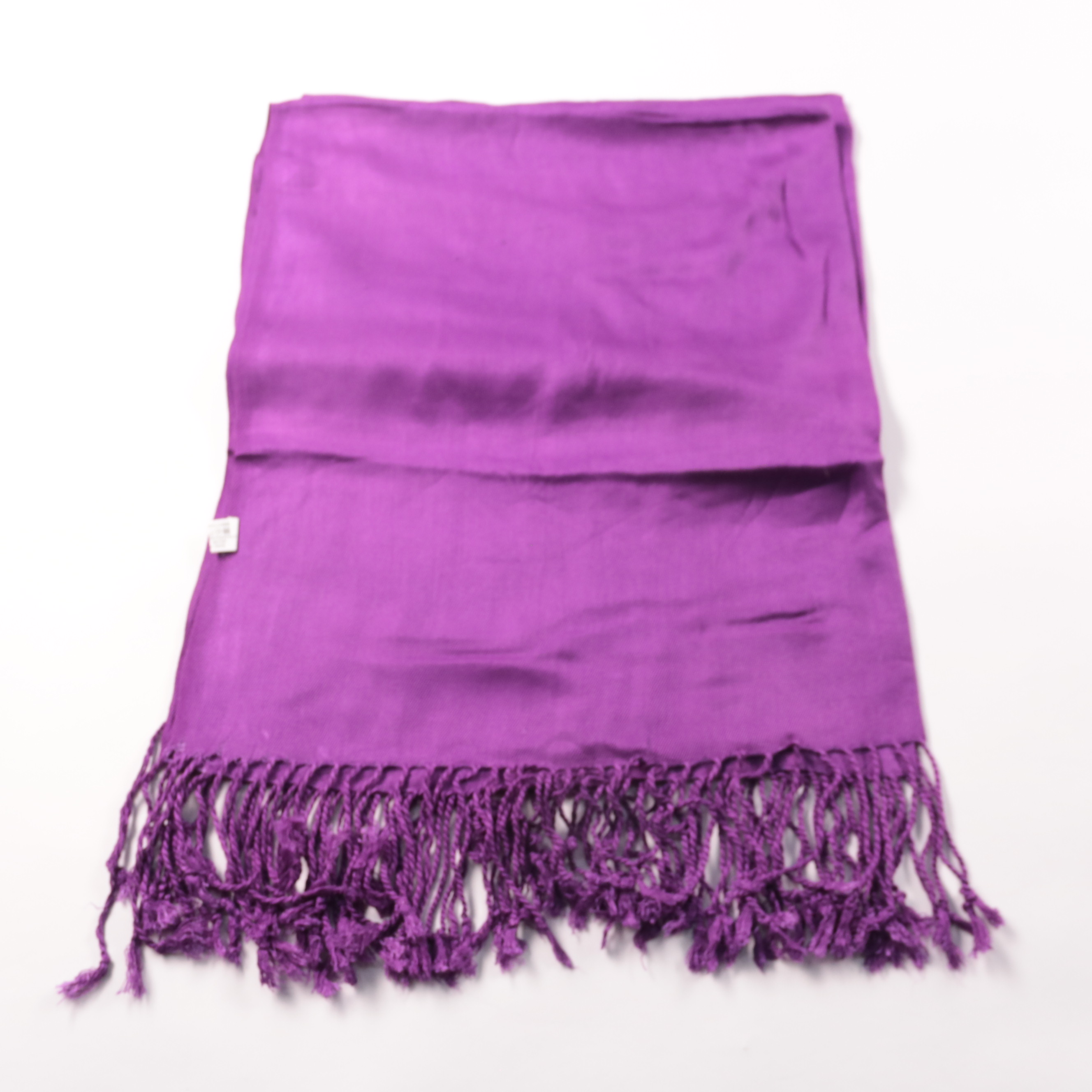 Фиолетовый шарф с кисточками из вискозы — лёгкий и гладкий на ощупь. Подойдёт для повседневных образов и как акцент к однотонной верхней одежде в демисезон. Компактно складывается и не занимает много места в сумке.