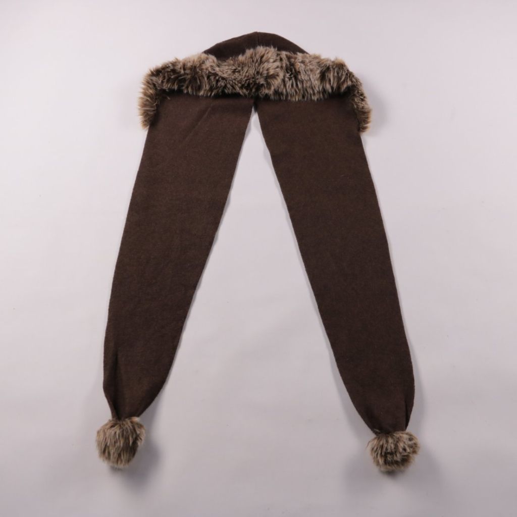 Тёплый шарф тёмно-коричневого цвета с отделкой из искусственного меха и помпонами на концах. Подойдёт для зимних прогулок и повседневной носки, добавляет образу уютный акцент. Длинные концы удобно завязывать разными способами и хорошо закрывают шею от ...