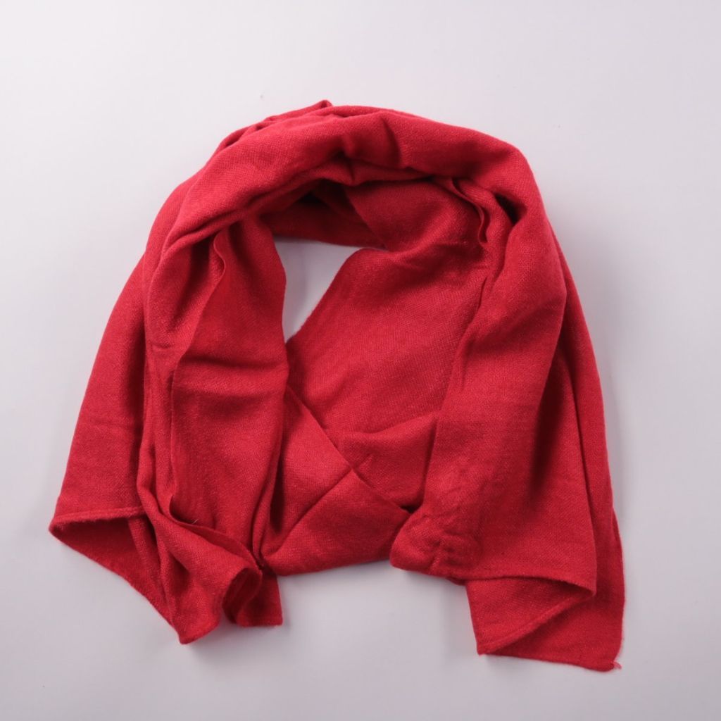 Красный шарф без указанного бренда, мягкий и однотонный. Подойдёт для повседневных образов в прохладную погоду и как акцент к верхней одежде. Акриловый состав практичен в уходе и быстро сохнет.