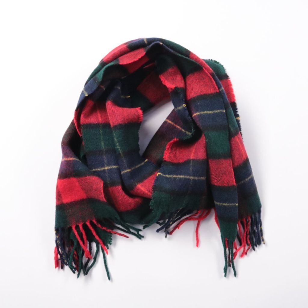 Шарф в клетку (тартан) с бахромой, без указанного бренда. Подойдёт для повседневных образов в прохладную погоду, легко сочетается с однотонной верхней одеждой. За счёт мягкой ткани удобно драпируется и хорошо закрывает шею от ветра.