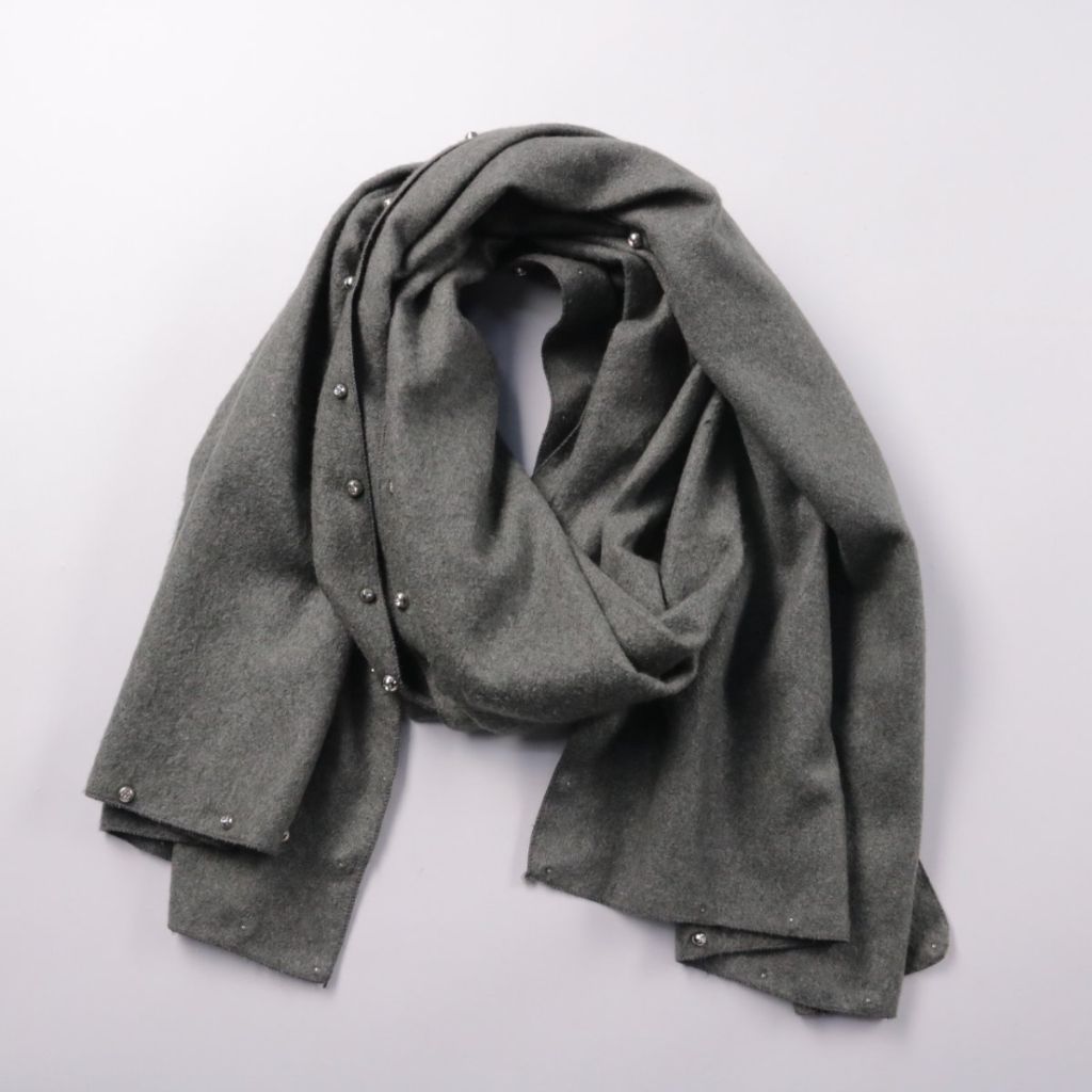 Шарф Parfois серого цвета, мягкий и плотный, с декоративными металлическими заклёпками по краю. Подойдёт для прохладной погоды и повседневных образов, можно носить как шарф или накидывать на плечи. Практичное преимущество — хорошо драпируется и легко с...
