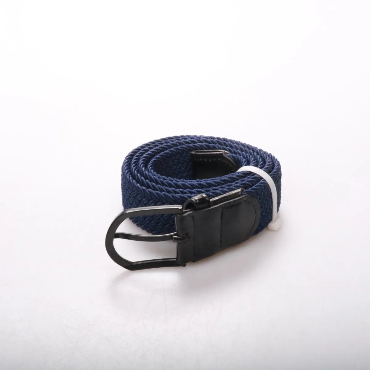 Плетёный ремень тёмно-синего цвета с металлической пряжкой и кожаными вставками. Подойдёт для джинсов и повседневных брюк, легко регулируется за счёт плетения. Практичен тем, что хорошо держит форму и не требует отверстий.