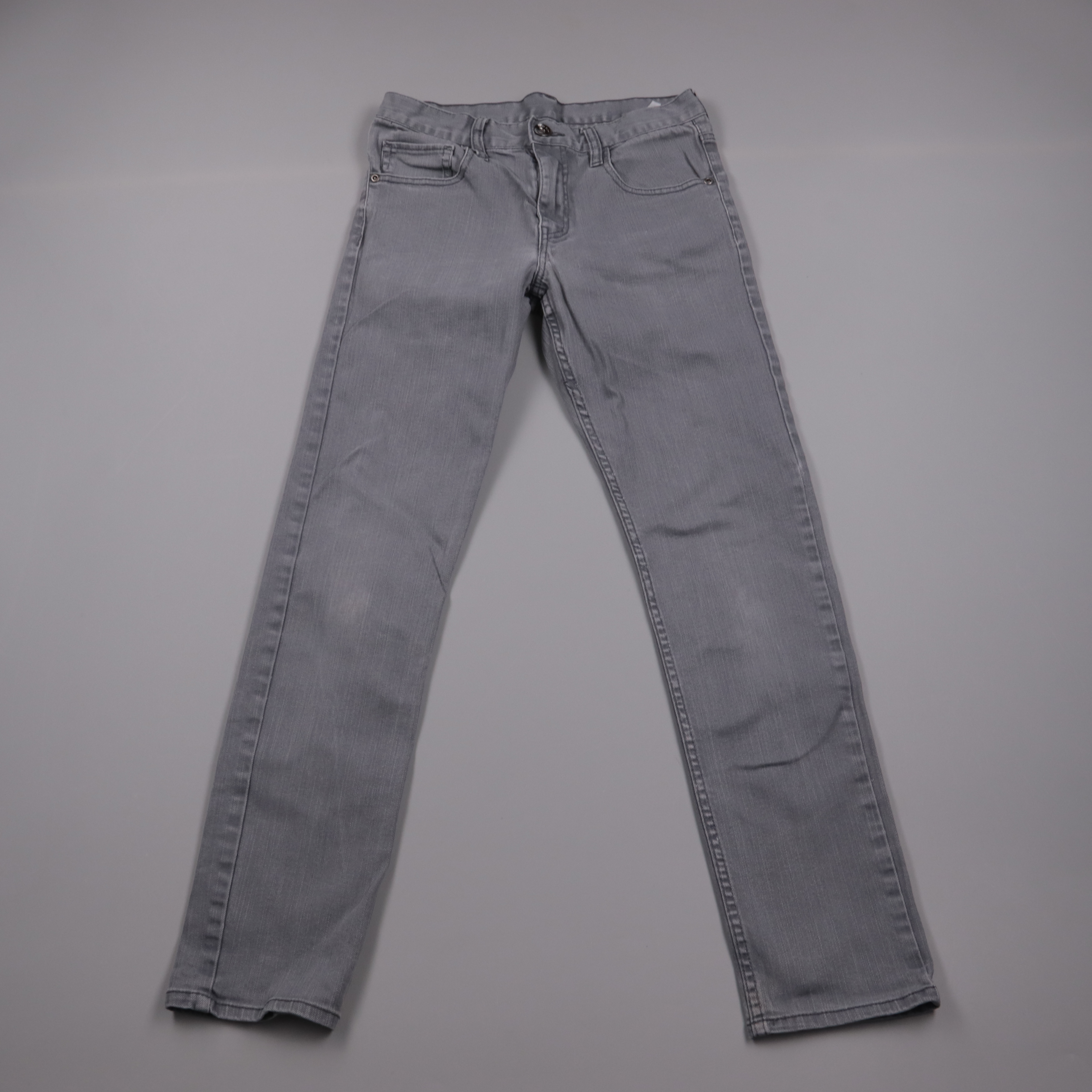 Женские джинсы H&M серого цвета, классическая модель с 5 карманами и застёжкой на молнию и пуговицу. Подойдут для повседневных образов на работу или прогулку, легко сочетаются с базовыми вещами. Плотный деним с добавлением эластана даёт комфортную поса...