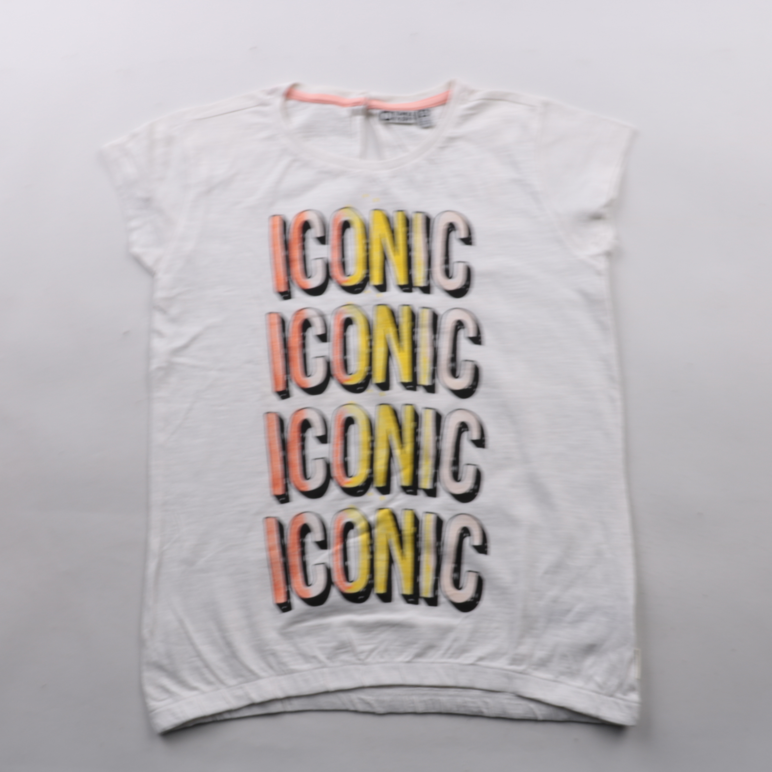 Футболка Tumble 'N Dry белого цвета с крупным принтом «ICONIC». Подойдёт для повседневной носки летом и для спортивных образов с шортами или джинсами. Материал из 100% органического хлопка, приятный к телу и хорошо дышит.