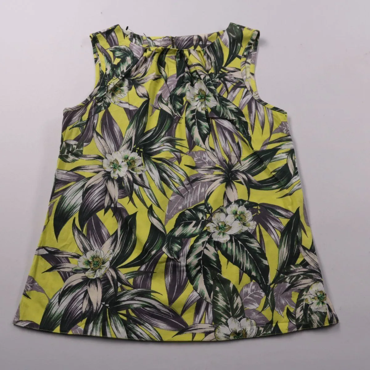 Летний топ для девочки без рукавов с ярким цветочным принтом на жёлтом фоне. Подойдёт для прогулок и повседневной носки в тёплую погоду. Хлопковая ткань с добавлением эластана тянется и удобна в движении.