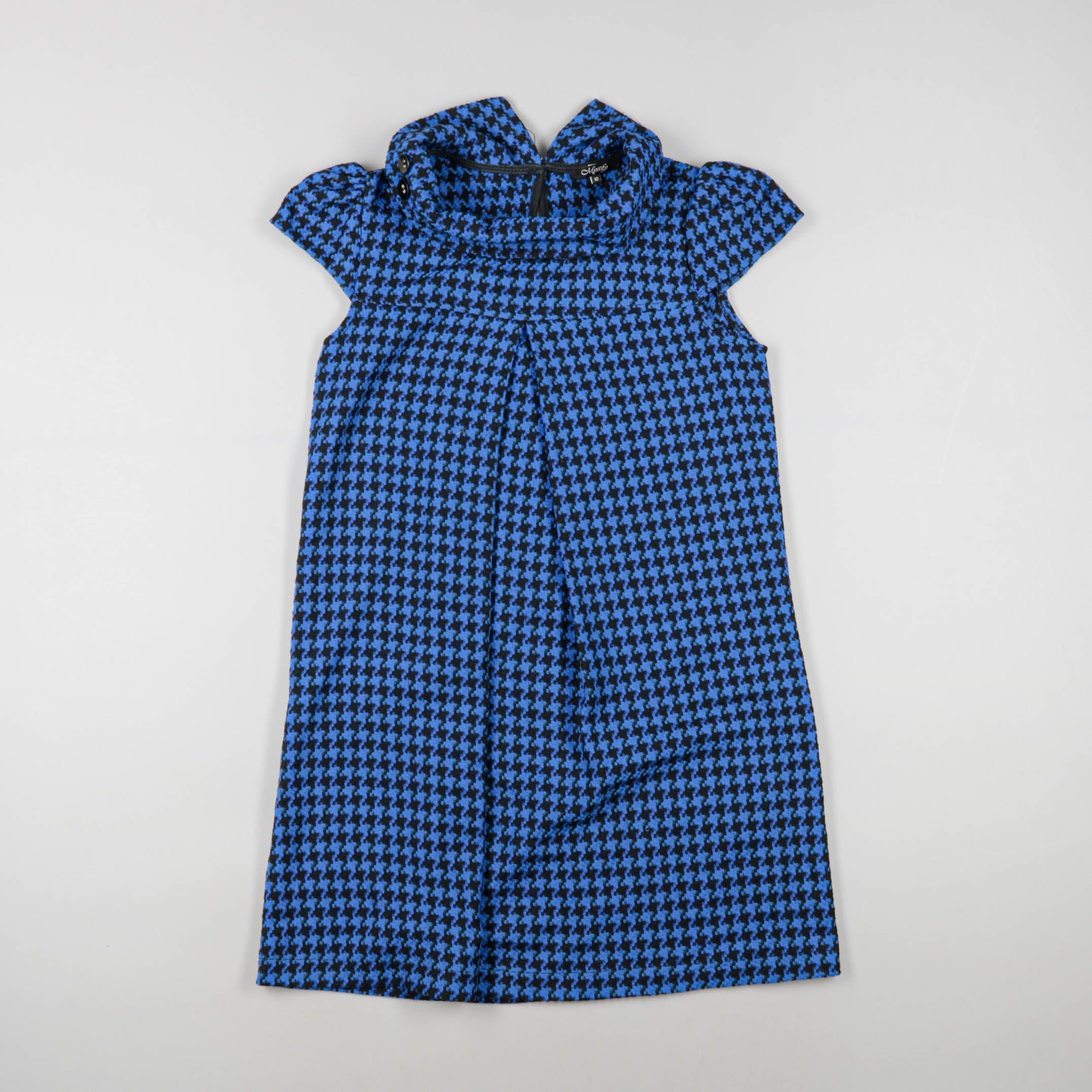 Платье для девочки в сине-чёрную «гусиную лапку» с коротким рукавом и небольшой молнией сзади. Подойдёт для школы, праздника или семейных выходов, легко сочетается с колготками и кардиганом. Практичный плотный материал держит форму и не мнётся слишком ...