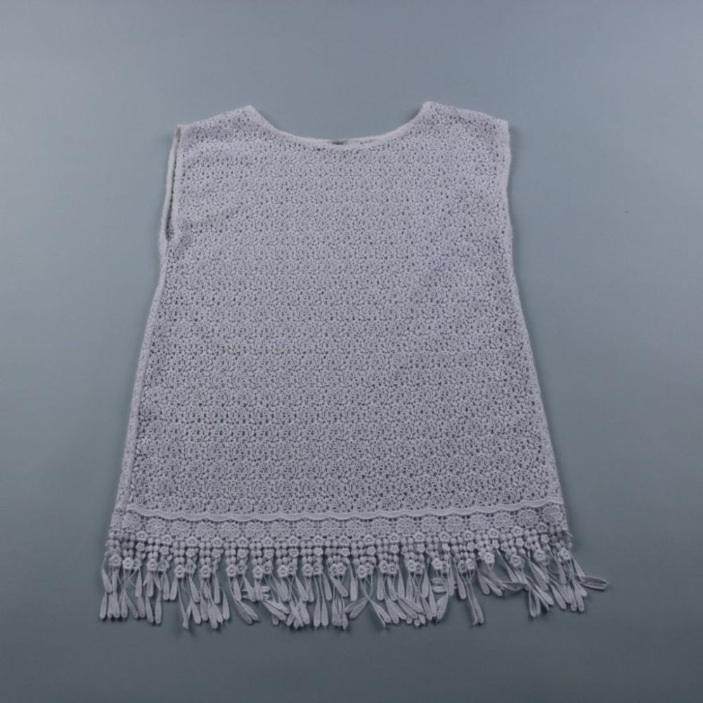 Летнее кружевное платье Next белого цвета с декоративной бахромой по низу. Подойдёт для прогулок и праздников в тёплую погоду, можно носить с сандалиями или балетками. Лёгкая фактура и свободный крой не сковывают движения и быстро сохнут после стирки.
