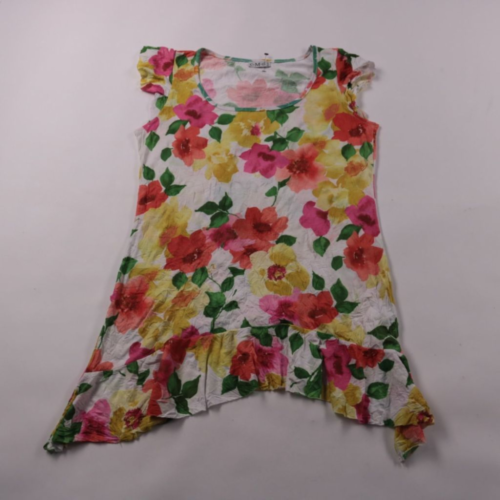 Детское платье C.M.D с ярким цветочным принтом и коротким рукавом, лёгкое и мягкое. Подойдёт для лета, прогулок и праздников в садике/школе. Ткань эластичная, хорошо тянется и не сковывает движения.
