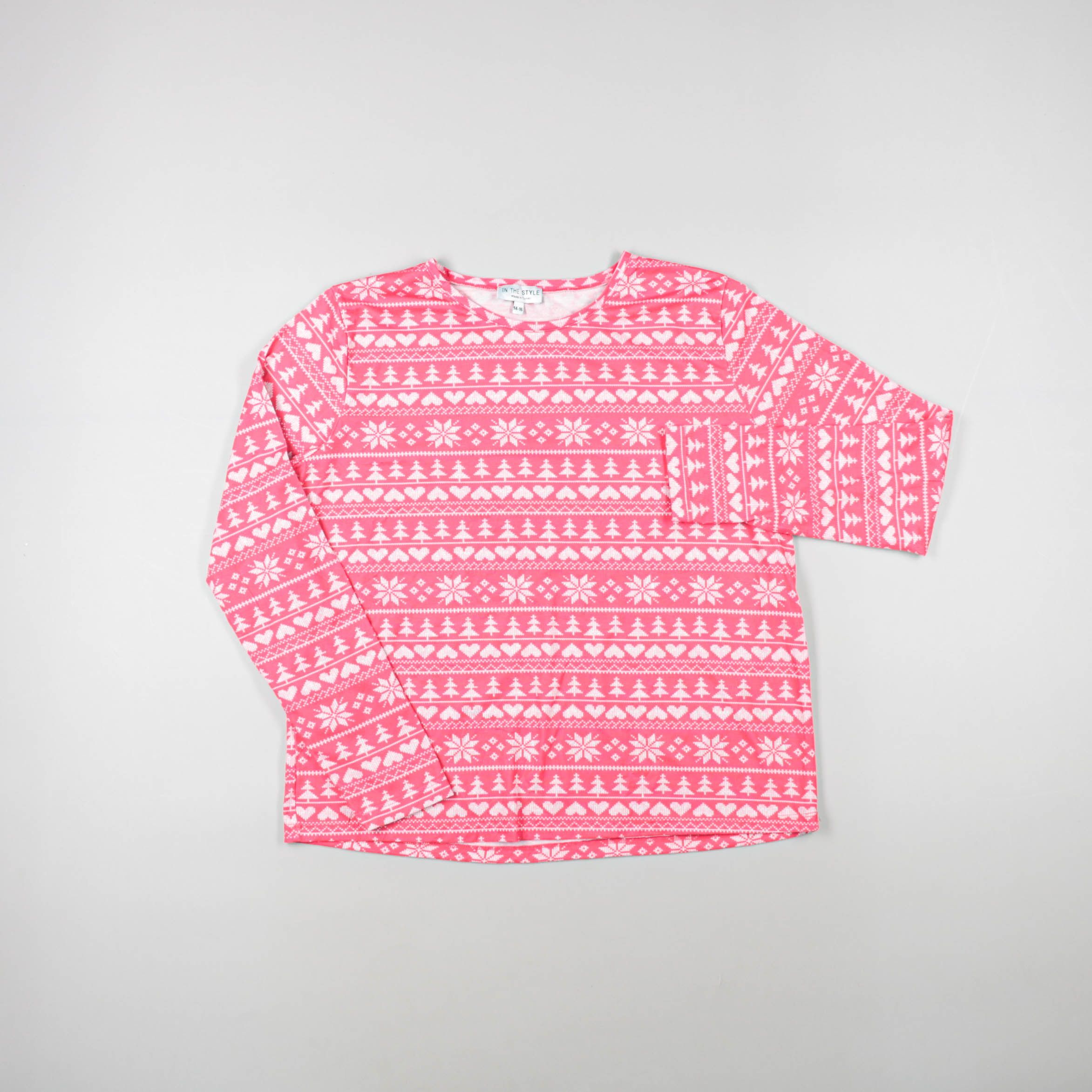 Кофта In the Style ярко-розового цвета с белым зимним узором (снежинки, ёлочки и сердечки). Подойдёт для прогулок и школы/сада в прохладную погоду как слой под куртку или жилет. Практичное преимущество — мягкий трикотаж и удобный круглый вырез, легко с...
