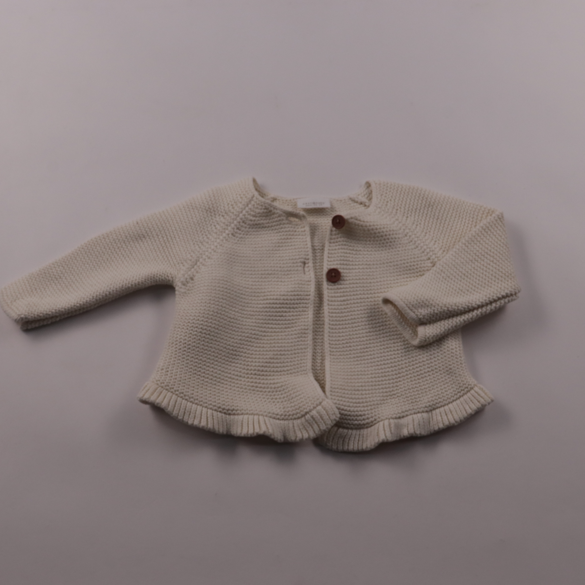Вязаная кофта Next baby молочного цвета с застёжкой на пуговицы и аккуратной рюшей по низу. Подойдёт для прогулок и на каждый день в прохладную погоду, легко сочетается с бодиками и платьями. Натуральный хлопок приятен к коже и прост в уходе.