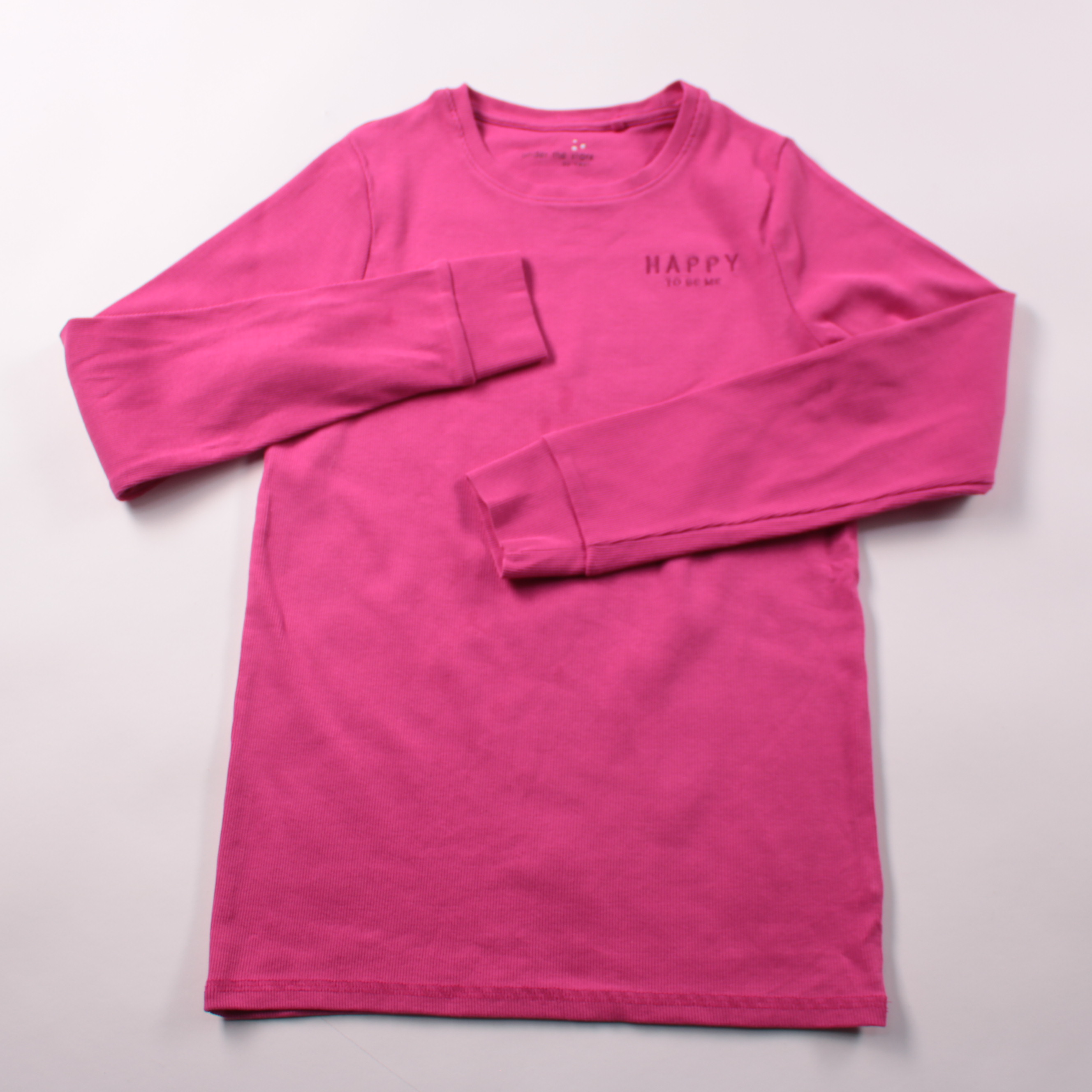 Кофта Next из мягкого трикотажа-рибана ярко-розового цвета, с небольшим принтом «HAPPY to be me». Подойдёт для школы и повседневной носки как базовый слой в прохладную погоду. Ткань хорошо тянется и комфортно сидит, не сковывая движения.