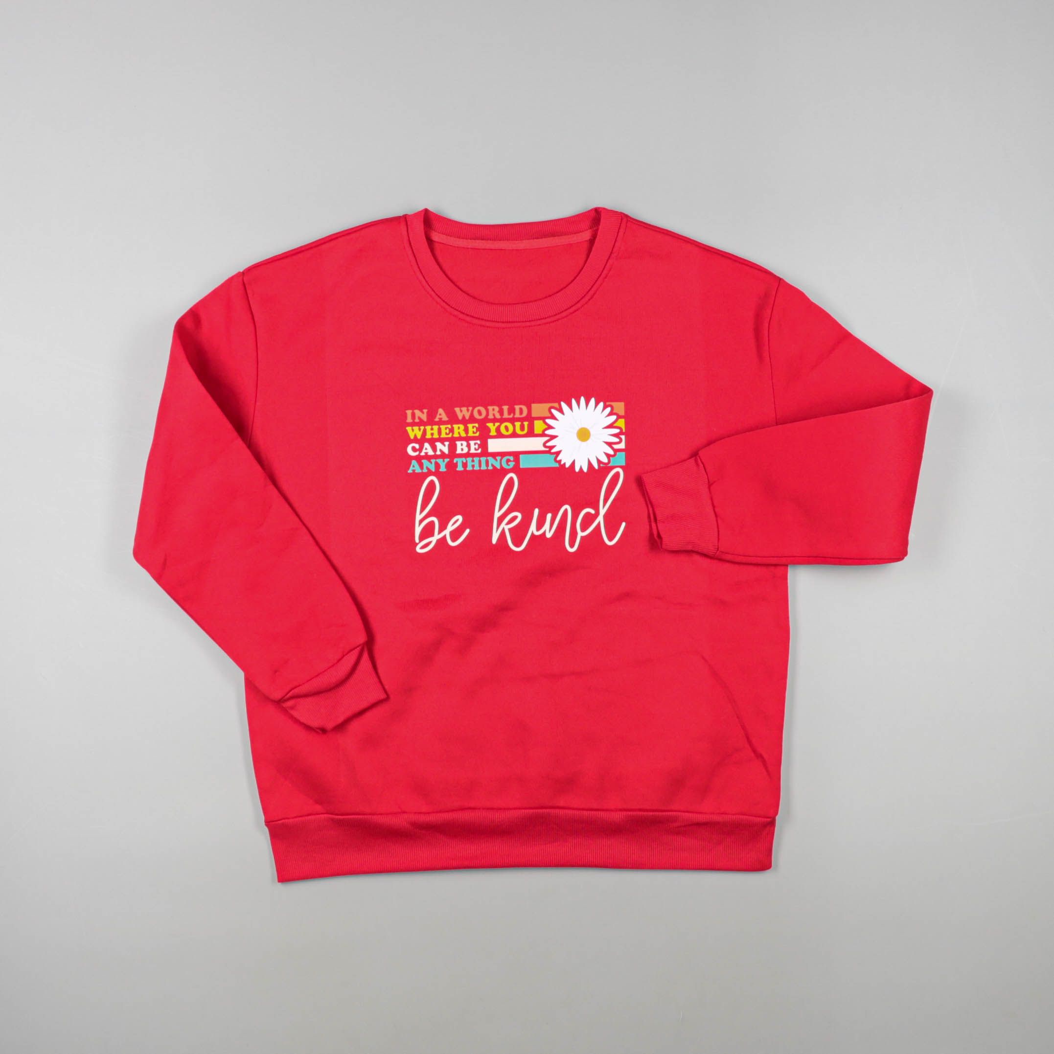 Детский свитшот с принтом и надписью «be kind» спереди. Подойдёт для школы, прогулок и повседневной носки в любое время года. Мягкий материал и эластичные манжеты помогают удобно сидеть и не стесняют движения.