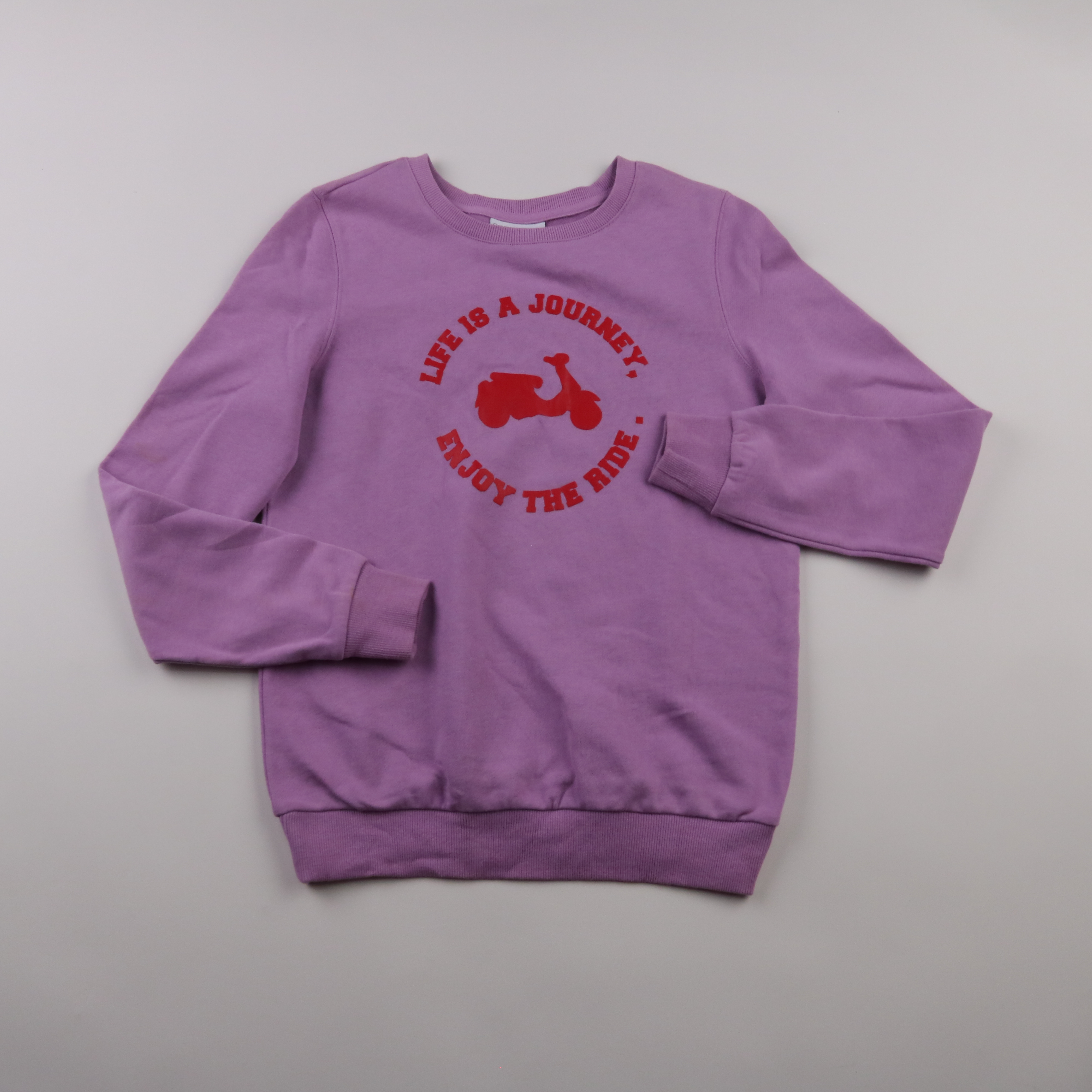 Свитшот Groggy сиреневого цвета с красным принтом спереди. Подойдёт для школы, прогулок и повседневной носки в прохладную погоду. Мягкая изнанка даёт дополнительное тепло и комфорт.