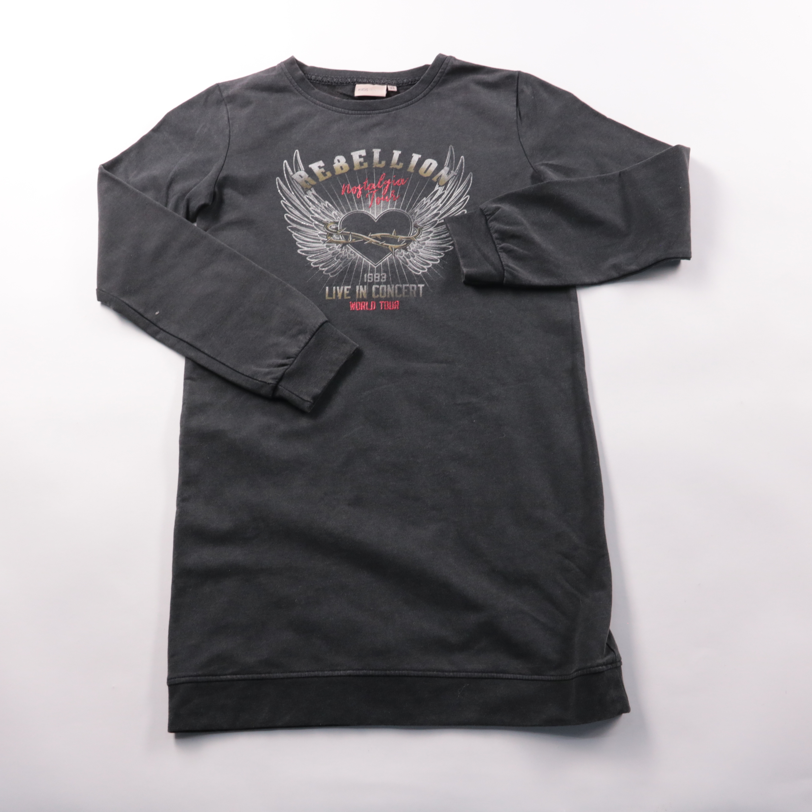 Свитшот KIDS ONLY тёмно-серого цвета с принтом «Rebellion» и длинным рукавом. Подойдёт для школы и прогулок в прохладную погоду, хорошо смотрится с джинсами и леггинсами. Мягкая трикотажная ткань с органическим хлопком комфортна в носке и проста в уходе.