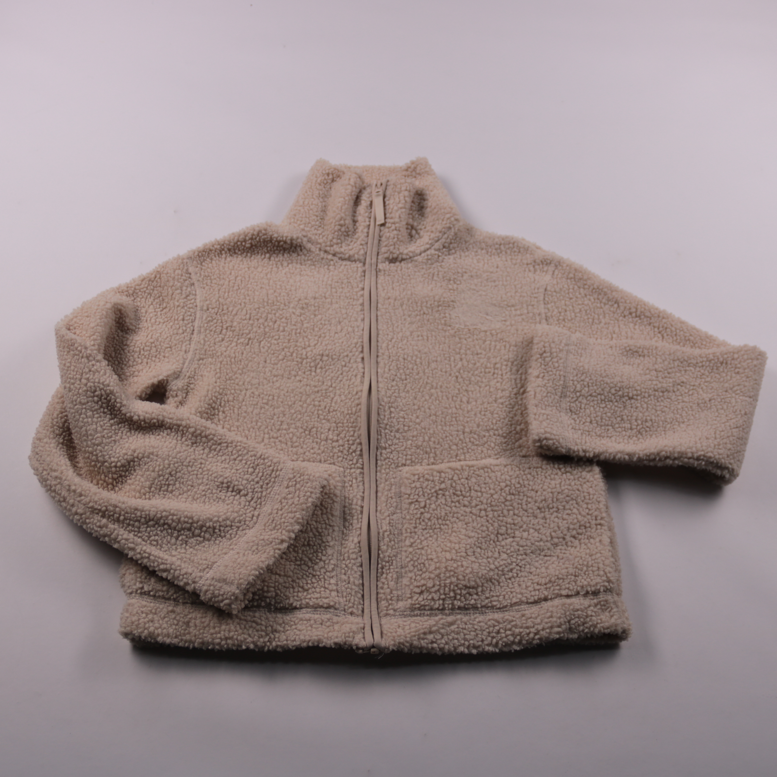 Мягкая куртка H&M из шерпы на молнии с высоким воротником. Подойдёт для прогулок в прохладную погоду и как второй слой под верхнюю одежду. Материал лёгкий и быстро сохнет после стирки.