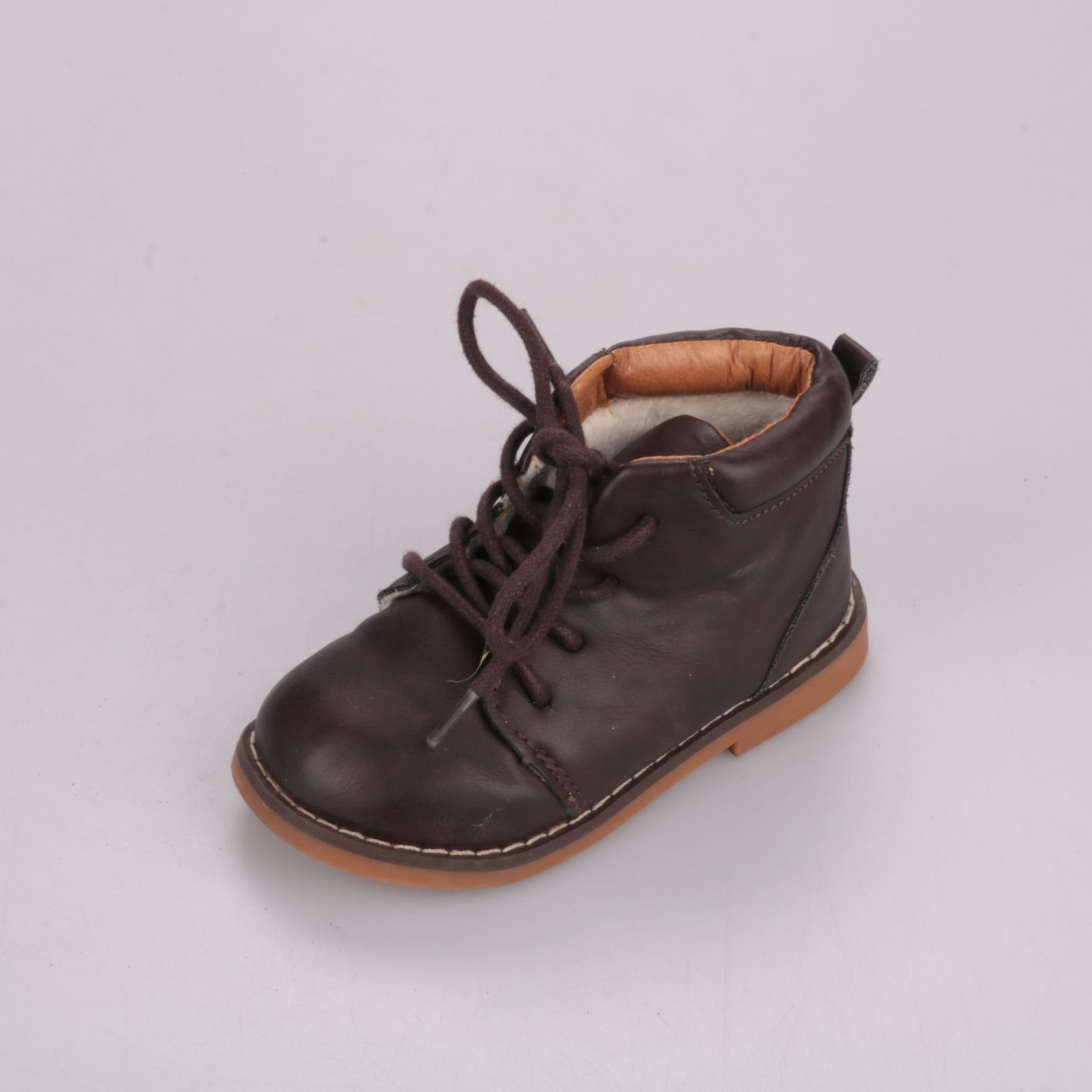 Детские ботинки H&M из гладкого материала на шнуровке, тёмно-коричневого цвета. Подойдут для прогулок в прохладную погоду весной и осенью. Плотная подошва хорошо защищает и устойчиво держится на поверхности.