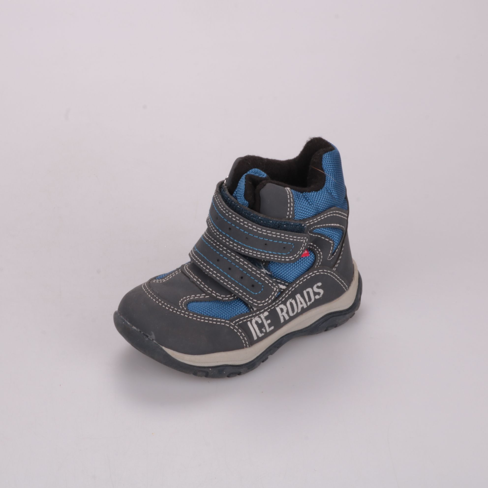 Зимние ботинки Ice Roads для мальчика, серо-синие, с застёжками на липучках и шипованной подошвой. Подойдут для прогулок в холодную погоду и на скользких участках. Практичное преимущество — быстро надеваются и хорошо держатся на ноге.