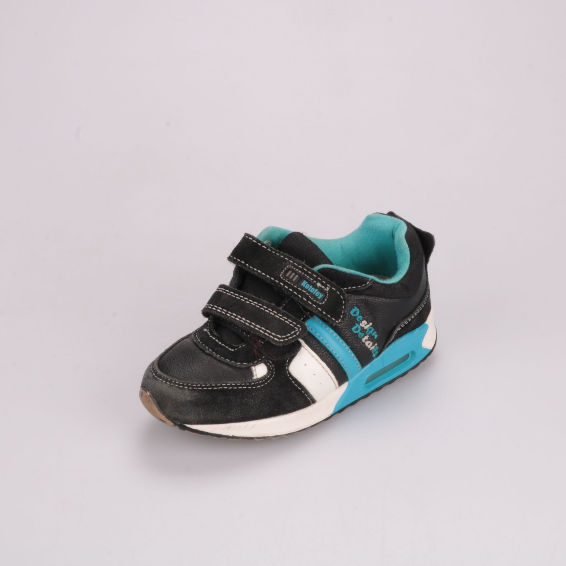 Кроссовки Kotofey для мальчика в черном цвете с бирюзовыми и белыми вставками, на удобных липучках. Подойдут для повседневной носки в садик/школу и прогулок в тёплую весну или осень. Легко надевать и снимать благодаря застёжкам Velcro.