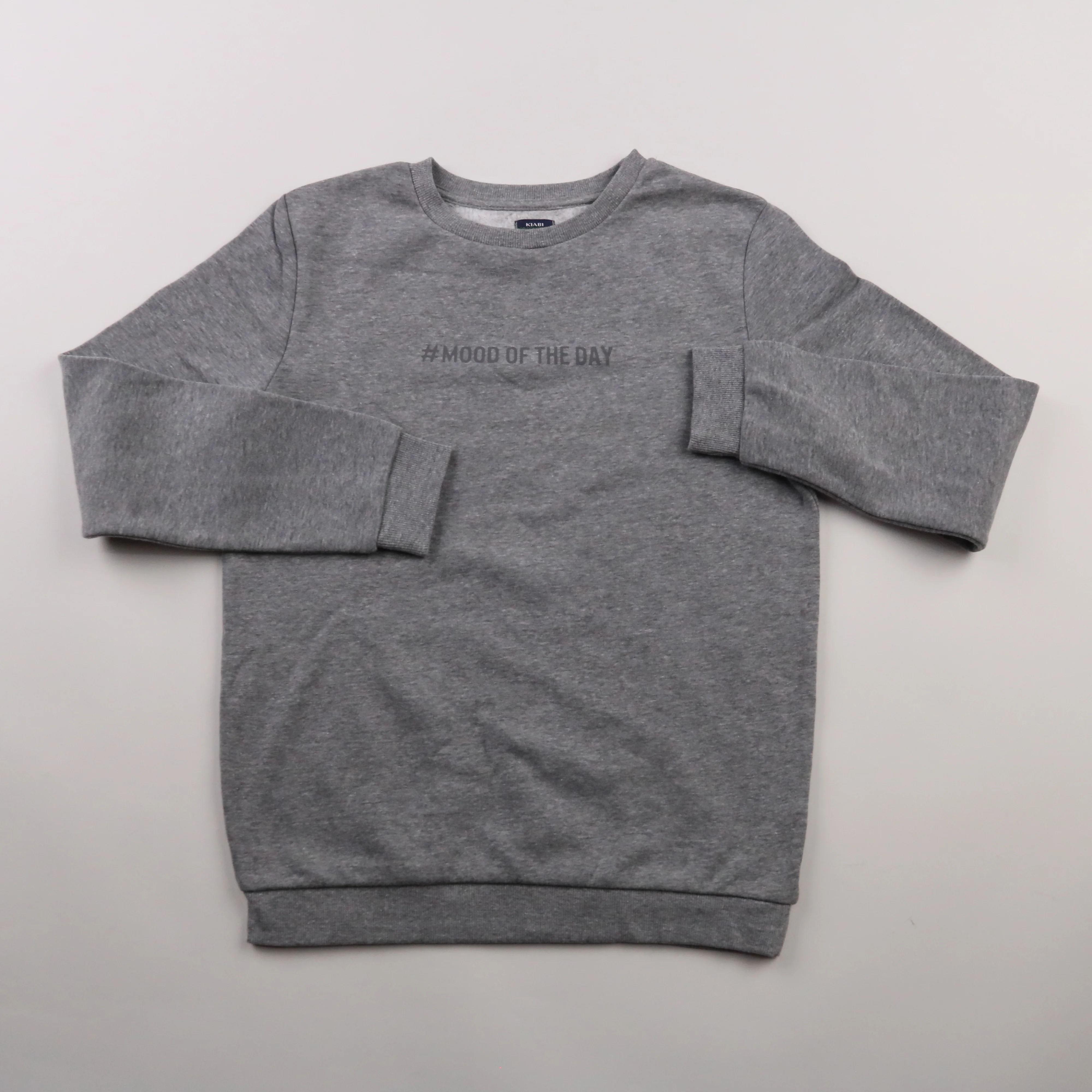 Толстовка Kiabi серого меланжа с надписью #MOOD OF THE DAY и мягким начёсом внутри. Подойдёт мальчику для школы и прогулок в прохладную погоду. Практична в носке и не требует сложного ухода.