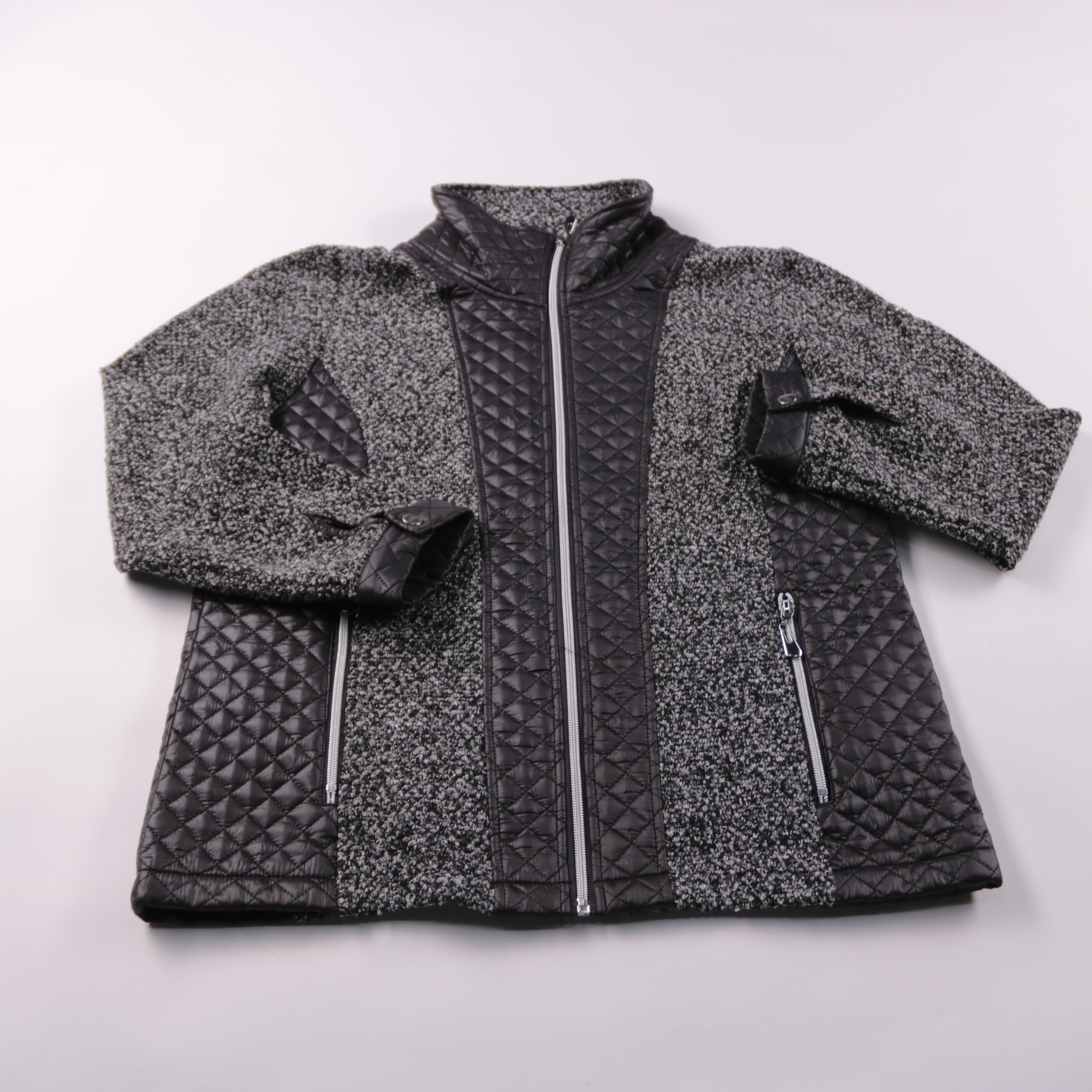 Куртка Paco Activewear серо-чёрного цвета из фактурного материала с простёжками и высоким воротником. Подойдёт на прохладную весну/осень для прогулок и в школу. Застёгивается на молнию, есть боковые карманы на молнии — удобно носить мелочи.