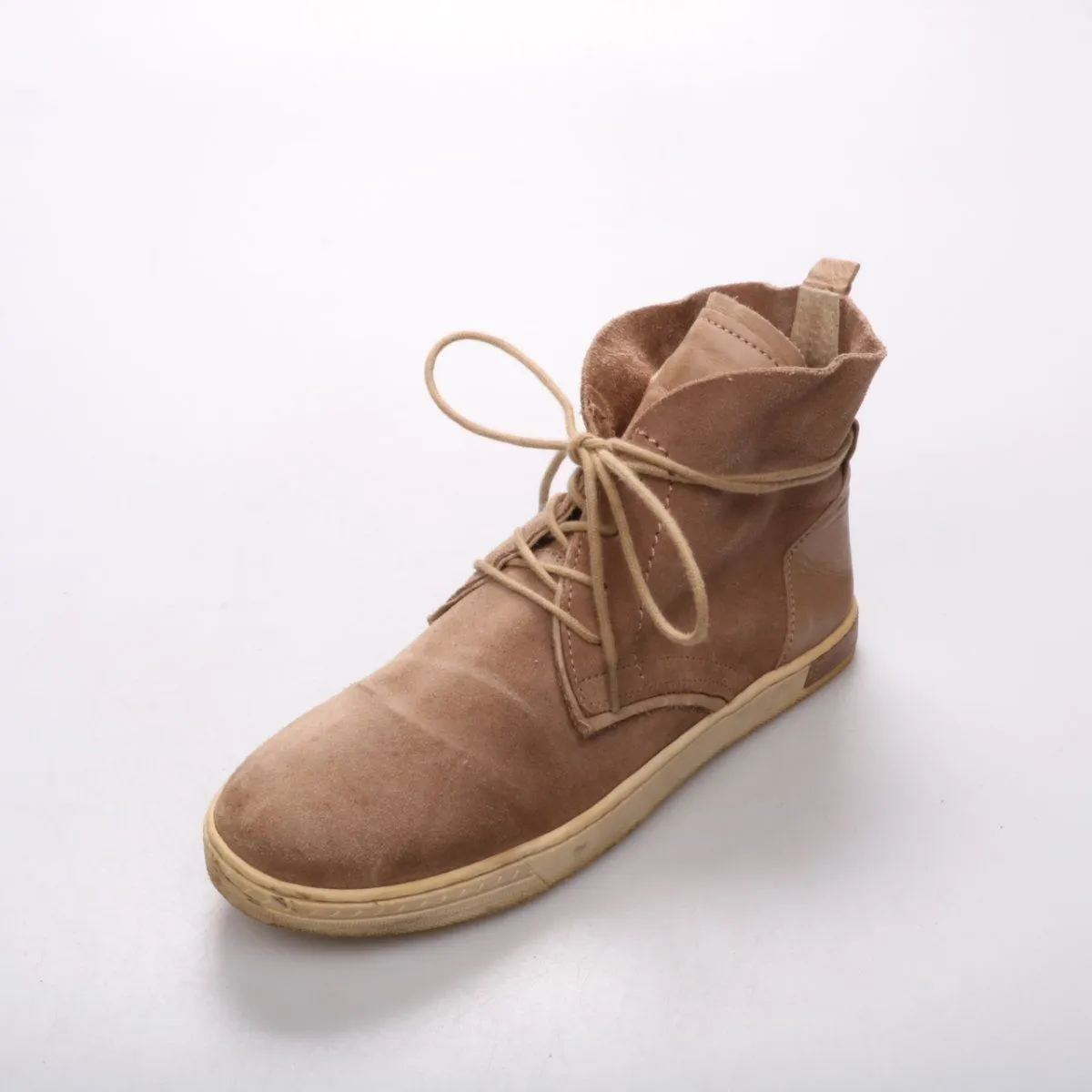 Мужские замшевые ботинки Exchange в коричневом цвете на шнуровке. Подойдут для повседневной носки в демисезон и хорошо сочетаются с джинсами и чиносами. Резиновая подошва с протектором делает их практичными для города.