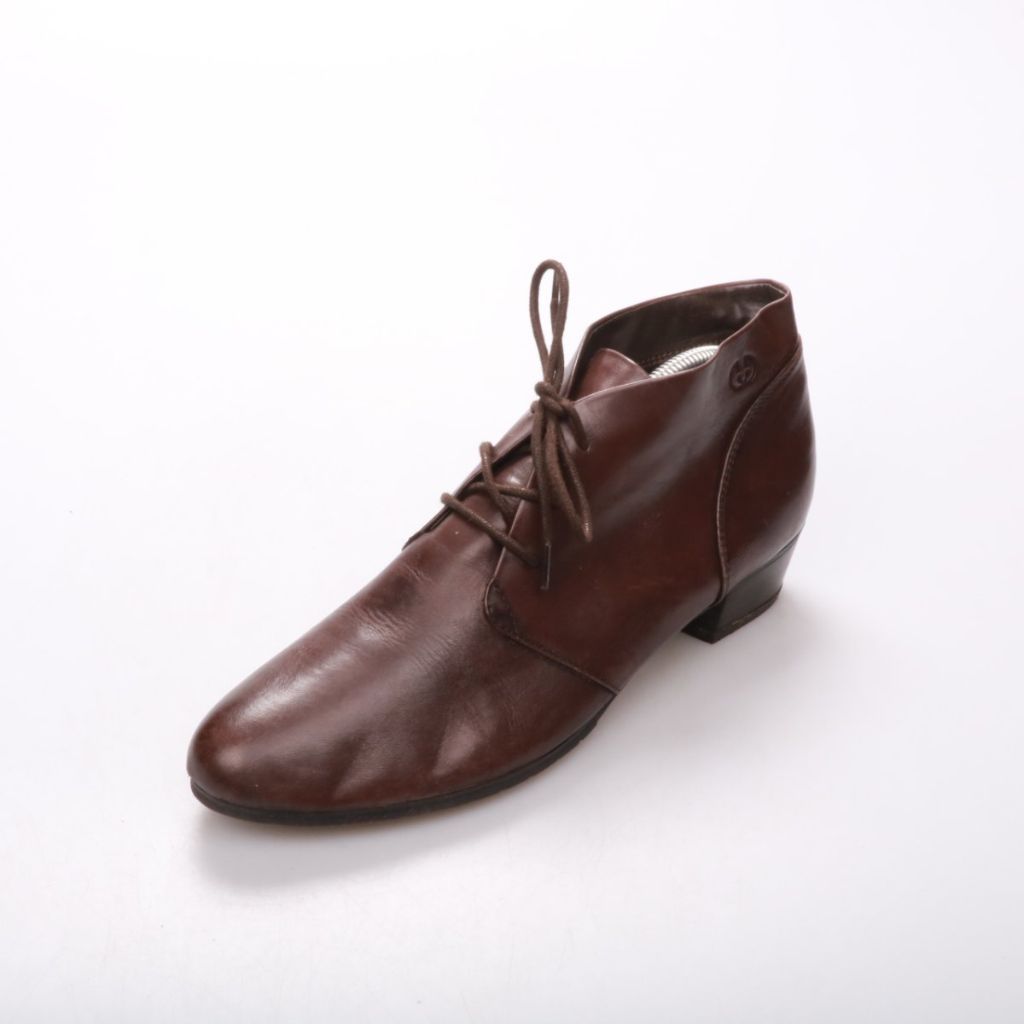 Кожаные ботинки Gerry Weber коричневого цвета на шнуровке, высота до щиколотки. Подойдут для повседневной носки в межсезонье и офисных образов. Плотная подошва с протектором добавляет устойчивости на улице.