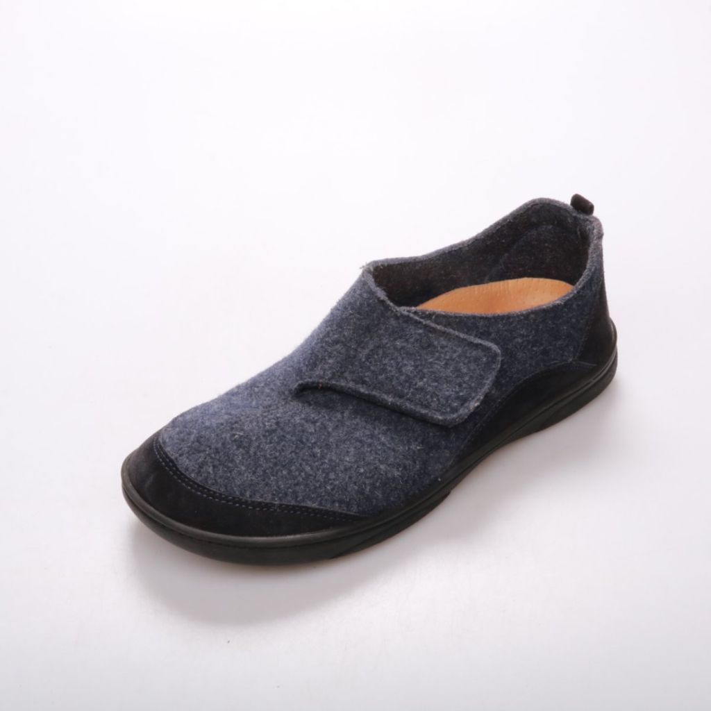 Мужские тапочки HELYESKO из войлока в тёмно-синем цвете с застёжкой на липучке. Подойдут для дома и дачи, когда нужно быстро обуваться и плотно фиксировать стопу. Резиновая подошва практична и даёт стабильное сцепление с полом.