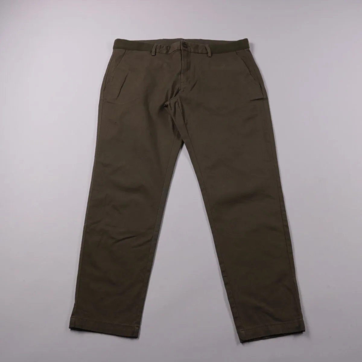 Мужские брюки Mango (MNG) в цвете хаки, прямого повседневного кроя на молнии и пуговице. Подойдут для офиса и на каждый день, хорошо сочетаются с рубашкой или свитшотом. Практичный плотный хлопок с добавлением эластана меньше мнётся и комфортнее в движении.