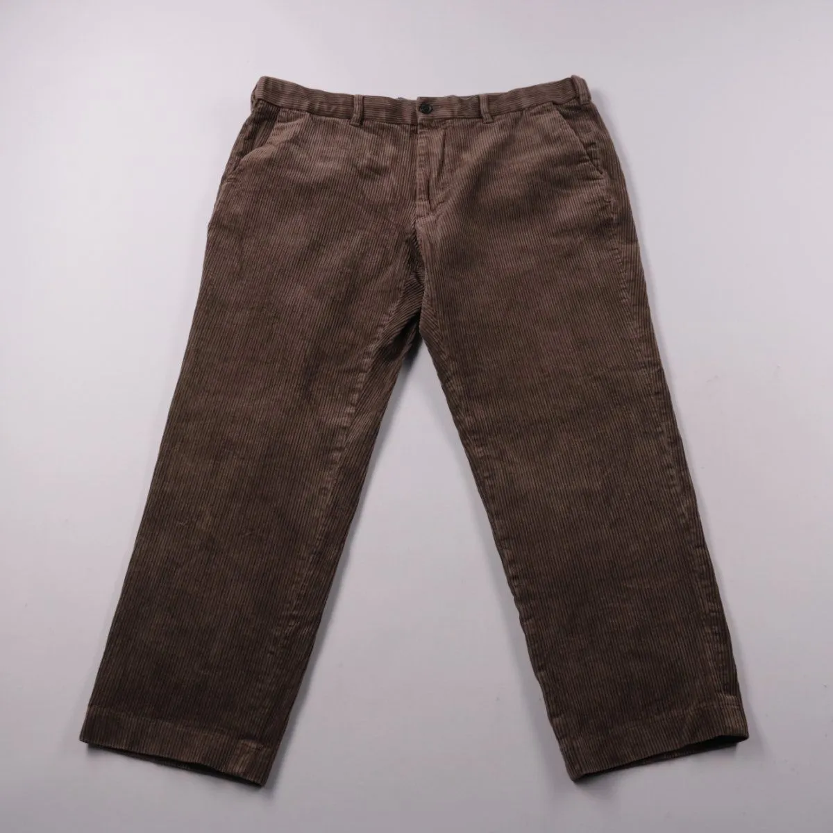 Мужские вельветовые брюки M&S Regular в коричневом цвете. Подойдут для повседневной носки в прохладную погоду и легко сочетаются с рубашками и свитерами. Плотная ткань со стрейчем делает посадку комфортной и не сковывает движения.