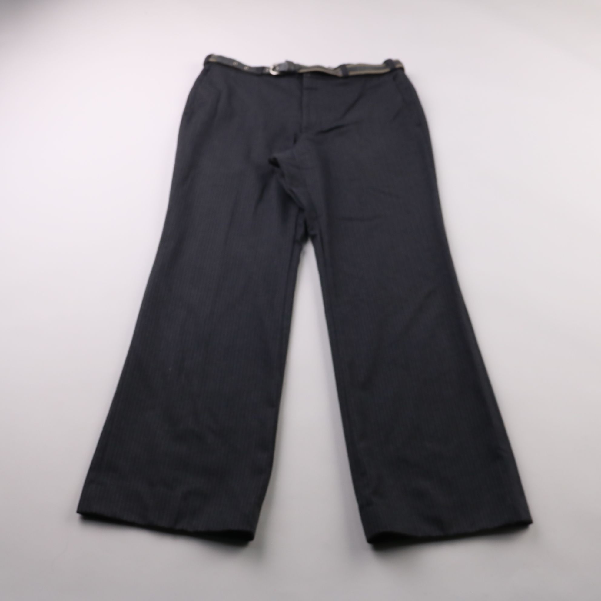 Классические мужские брюки тёмно-синего цвета в тонкую полоску, размер 54. Подойдут для офиса и деловых встреч, хорошо смотрятся с рубашкой или пиджаком. Плотная ткань держит форму и аккуратно выглядит в течение дня.