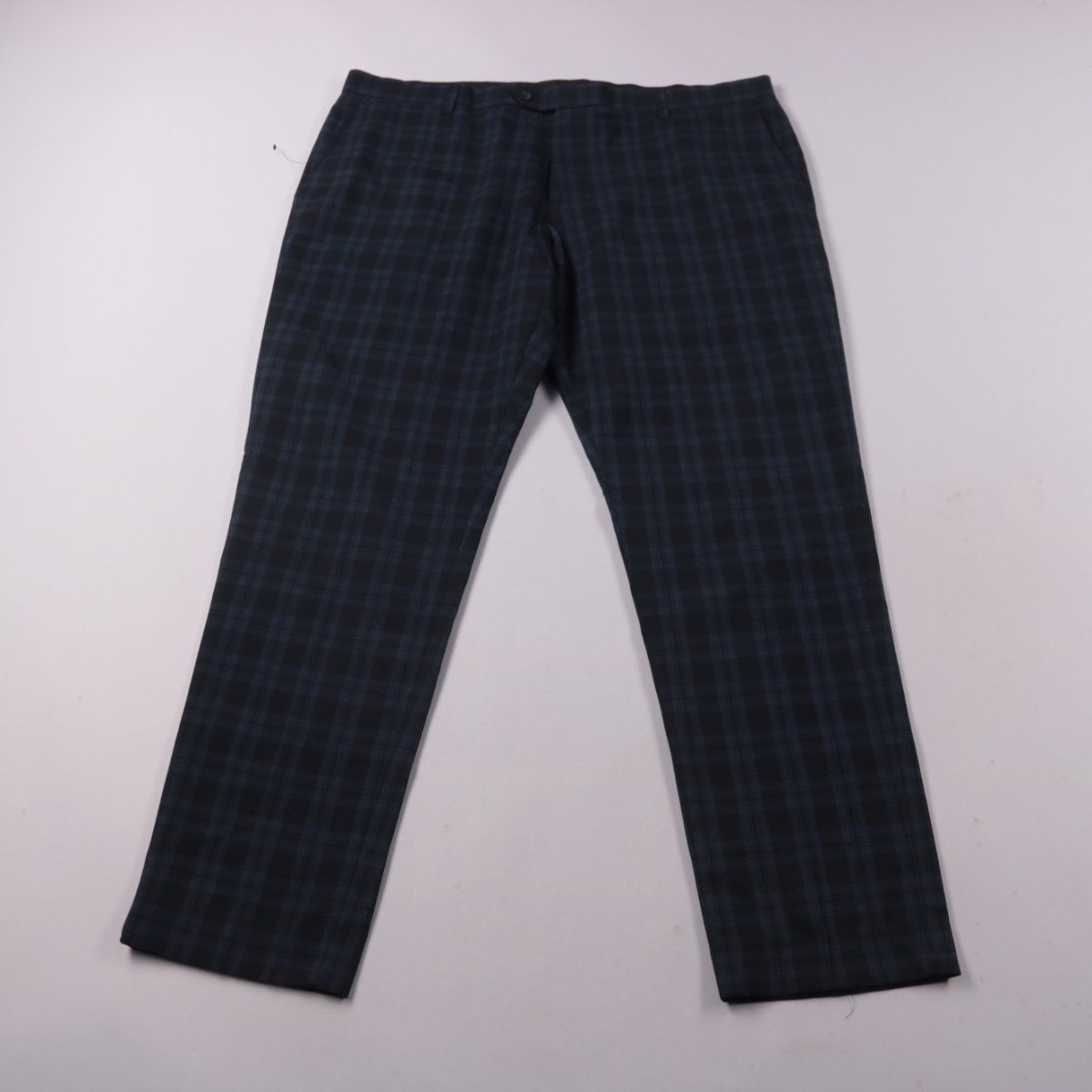 Классические мужские брюки Next тёмно-синего цвета в клетку, прямой крой. Подойдут для офиса и более формальных образов. Практичный состав с полиэстером — проще в уходе и меньше мнётся.