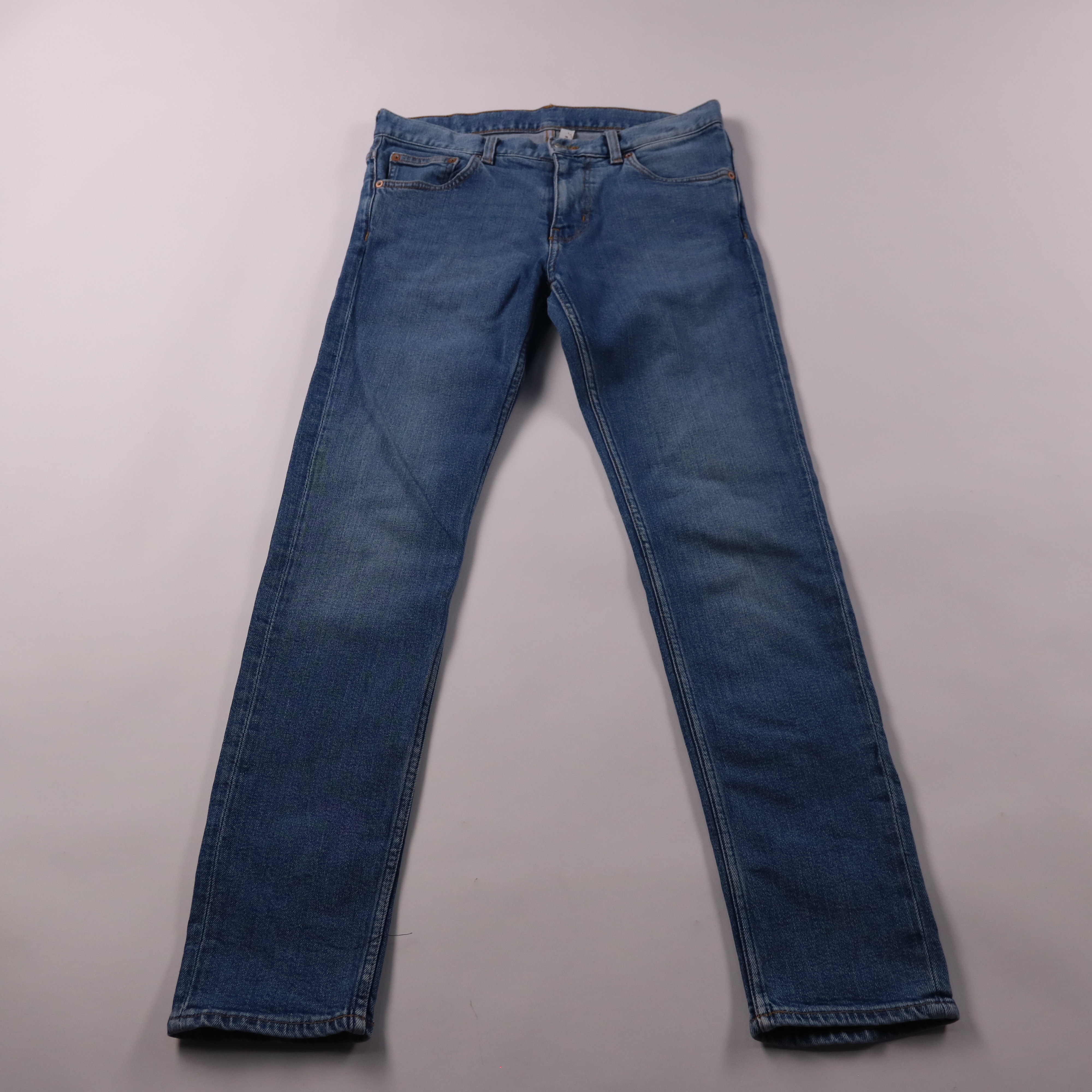 Мужские джинсы Weekday Friday из синего денима, ровный классический силуэт на каждый день. Подойдут для повседневных образов с кедами или ботинками в любое время года. Плотная ткань хорошо держит форму и долго носится.