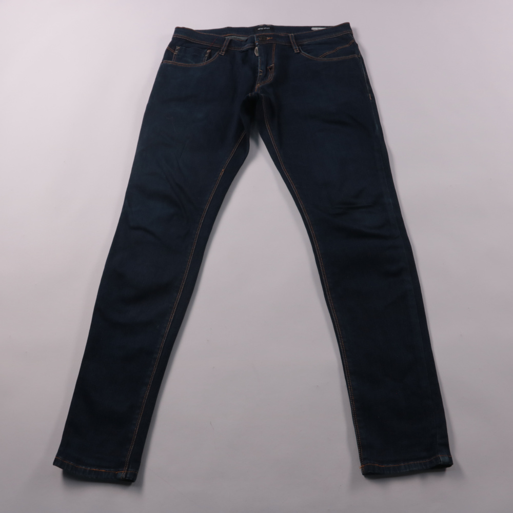 Мужские джинсы Antony Morato из тёмно-синего денима со стрейчем, зауженный силуэт. Подойдут для повседневной носки и офиса в стиле casual, легко сочетаются с кедами и ботинками. Эластан в составе добавляет комфорт и свободу движений.