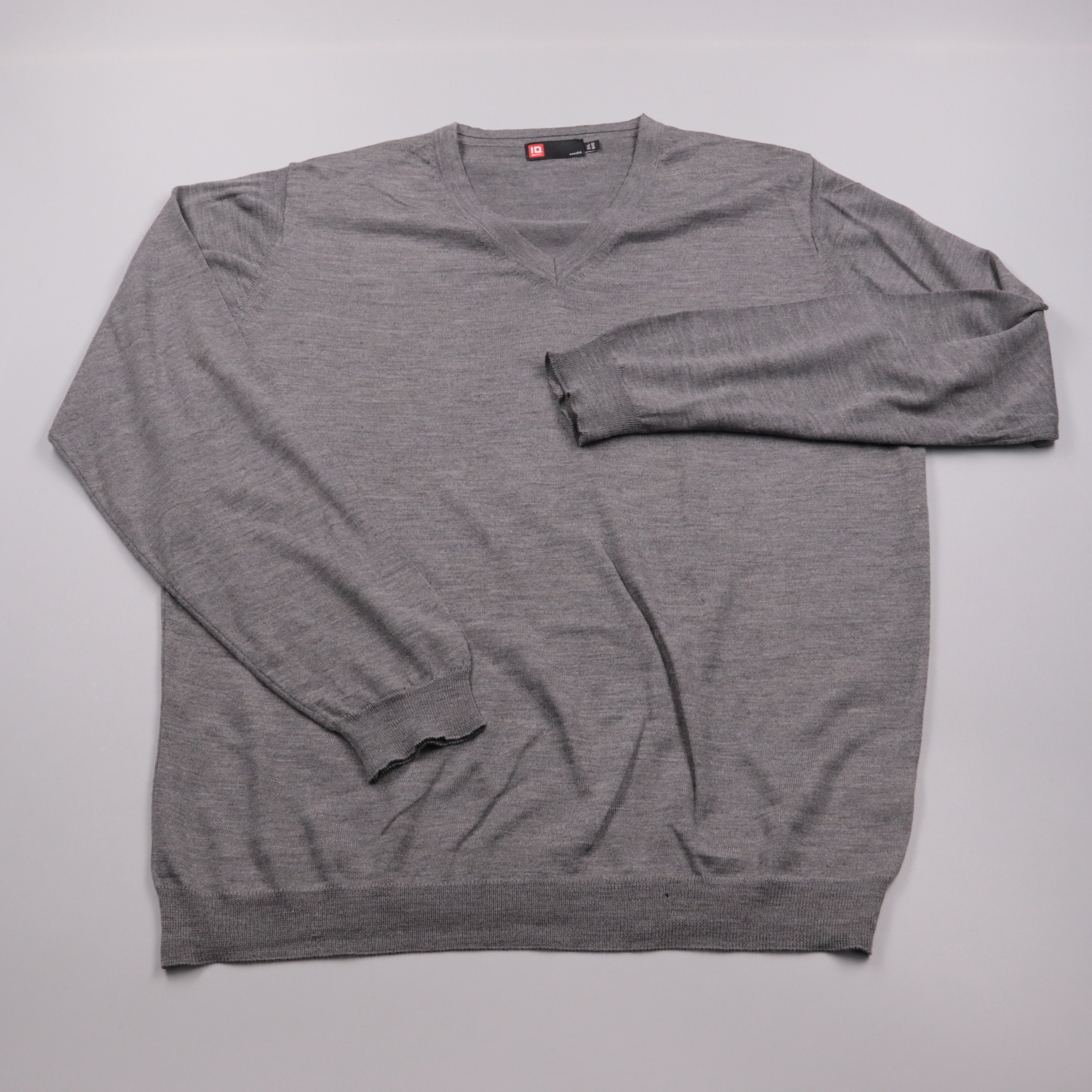 Мужской серый джемпер ID Identity с V-образным вырезом, тонкая вязка. Подойдёт для офиса и повседневных образов в демисезон, хорошо смотрится с рубашкой или футболкой. Практичный плюс — смесь мериносовой шерсти и акрила: тёплый и при этом проще в уходе.