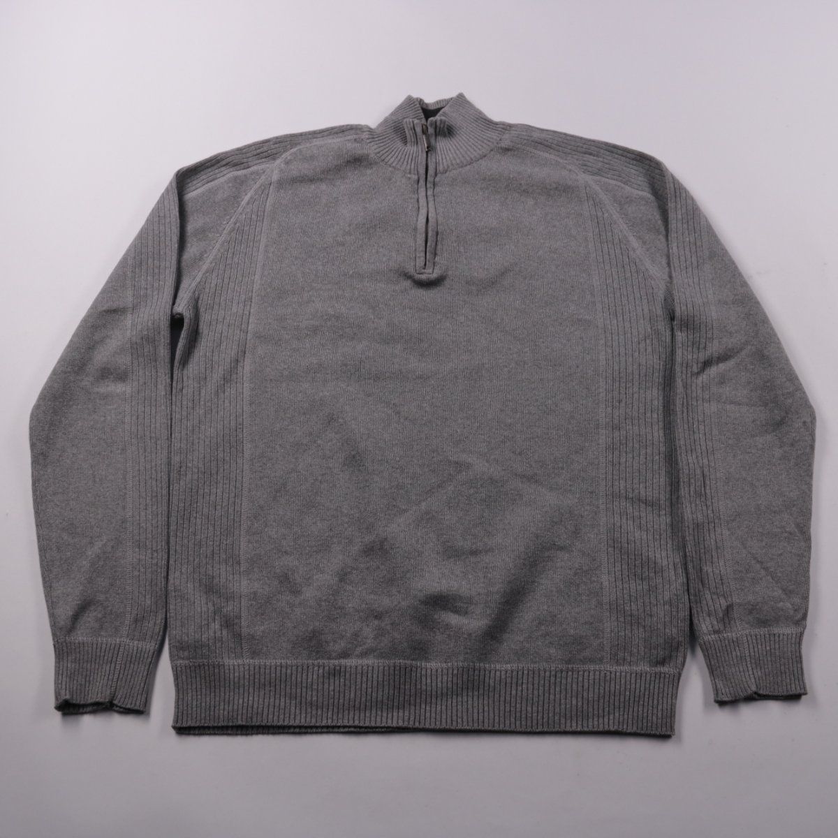 Мужской трикотажный джемпер Canda (C&A) серого цвета с воротником-стойкой и короткой молнией. Подойдёт для повседневной носки в демисезон и в помещении, хорошо сочетается с джинсами и брюками. Практичен тем, что молнию можно расстегнуть для регулировки тепла и посадки у горла.