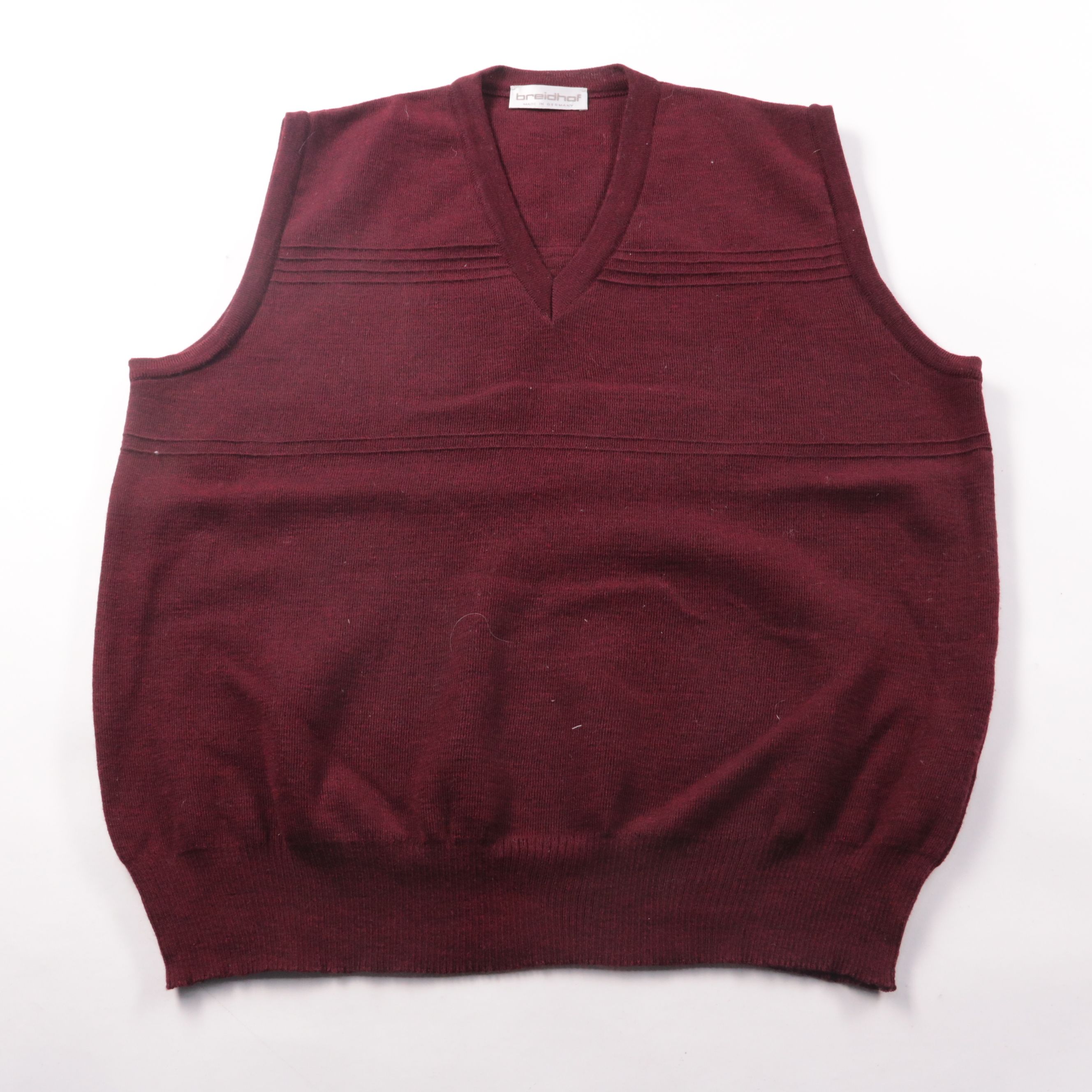Мужской трикотажный джемпер-жилет Breidhof бордового цвета с V-образным вырезом, Made in Germany. Подойдёт для офиса и повседневных образов в прохладную погоду, удобно носить поверх рубашки. Смесь шерсти и акрила хорошо держит тепло и меньше мнётся при...