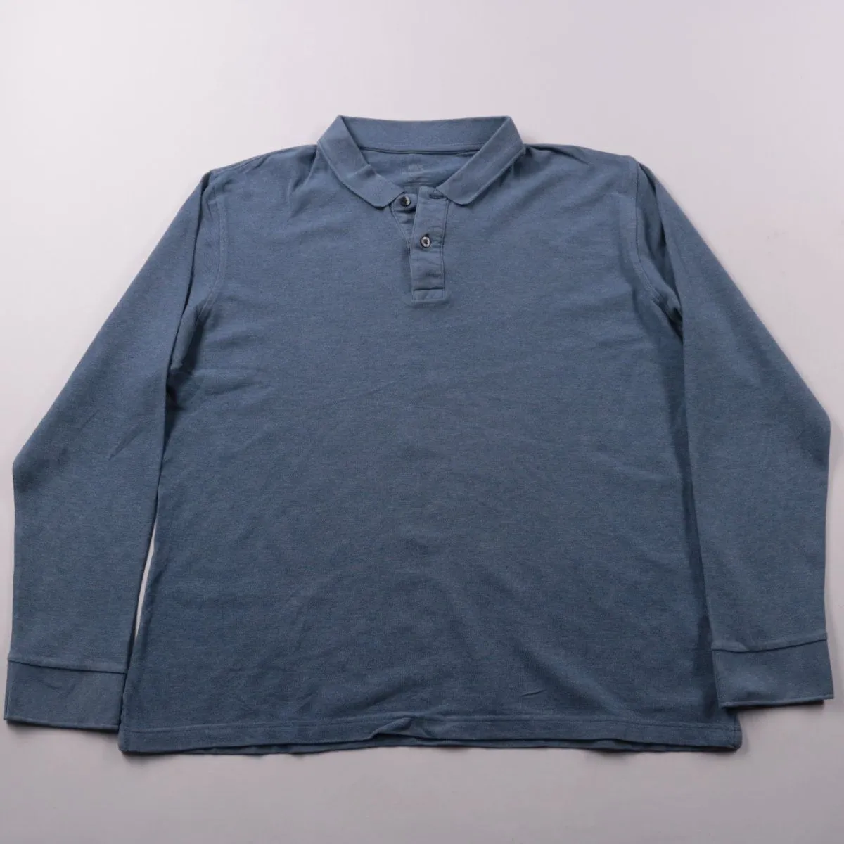 Мужское поло M&S Regular Fit с длинным рукавом, спокойного синего меланжевого оттенка. Подойдёт для повседневных образов и офиса в стиле casual. Натуральный хлопок хорошо дышит и комфортен в носке.