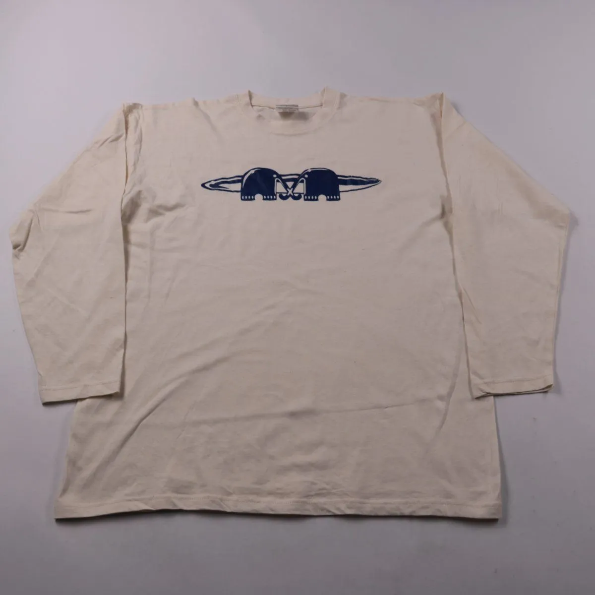 Лонгслив B&C молочного цвета с синим принтом на груди. Подойдёт для повседневной носки и спокойных casual-образов. Натуральный хлопок приятен к телу и хорошо дышит.
