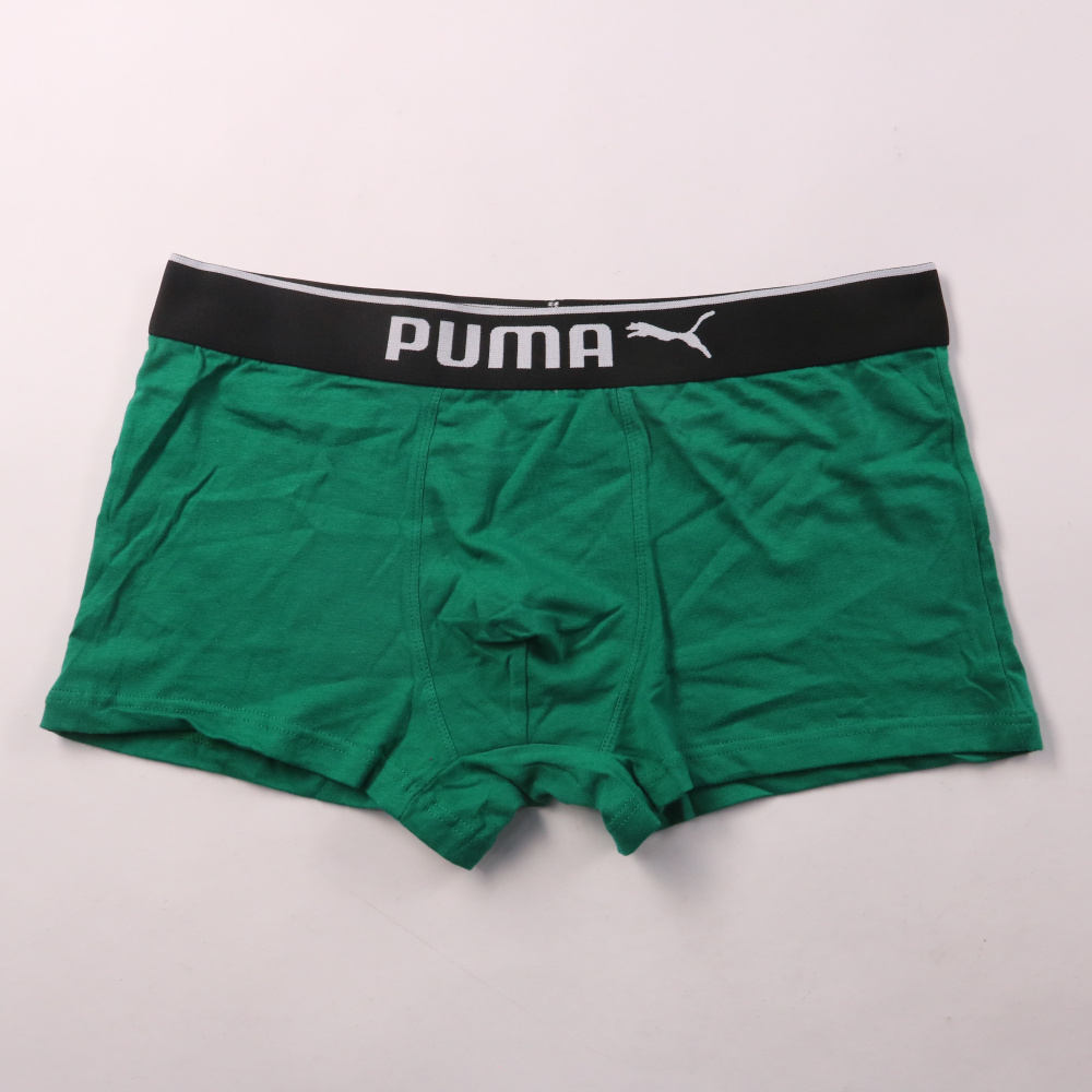 Мужские трусы-боксеры Puma зелёного цвета с брендированной эластичной резинкой. Подойдут для повседневной носки и занятий спортом благодаря мягкому хлопку и добавлению эластана. Хорошо тянутся и комфортно сидят по талии.