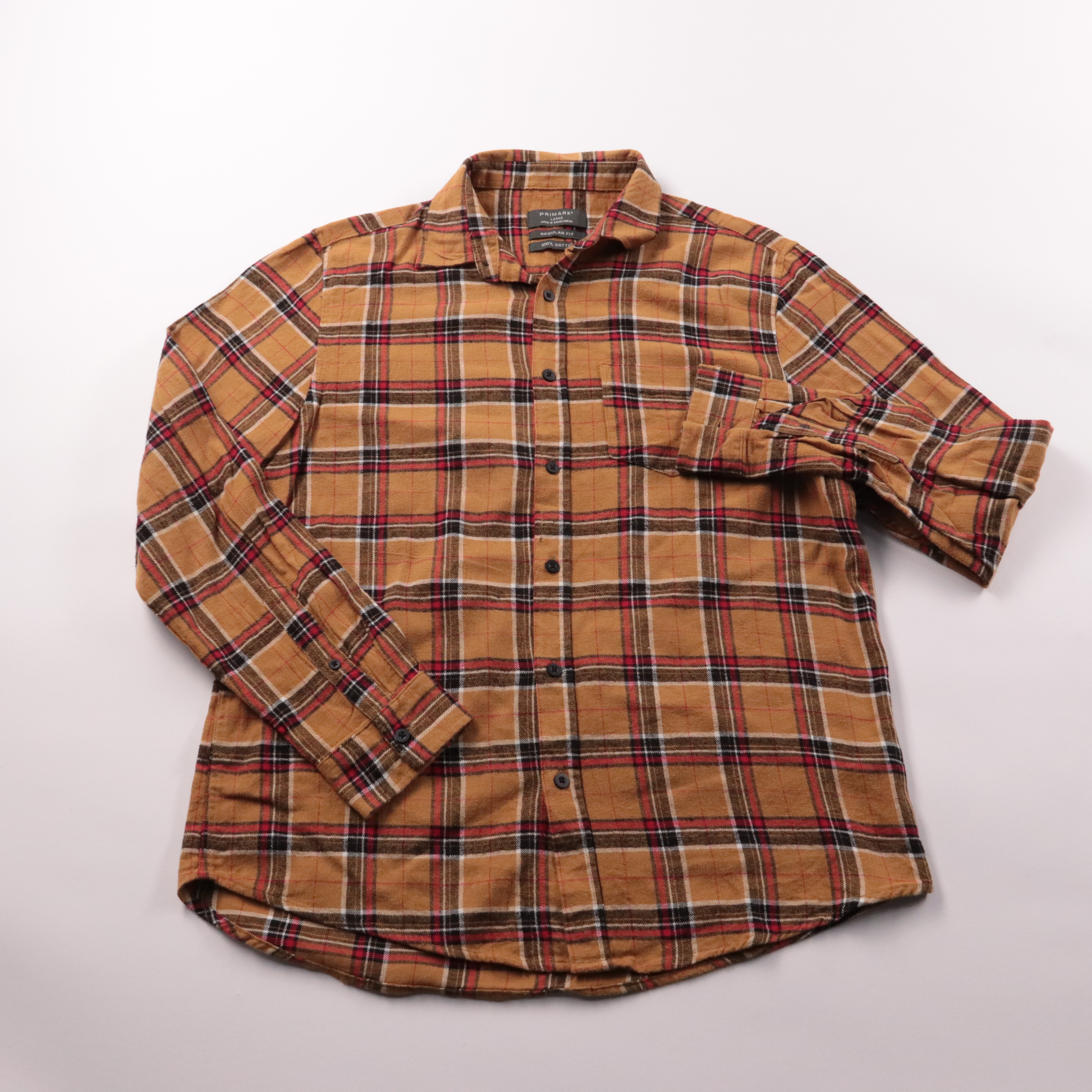 Мужская фланелевая рубашка Primark Regular Fit в клетку, с длинным рукавом и нагрудным карманом. Подойдёт для повседневной носки в прохладную погоду, можно носить как слой поверх футболки. Хлопок 100% — ткань дышит и комфортна в течение дня.