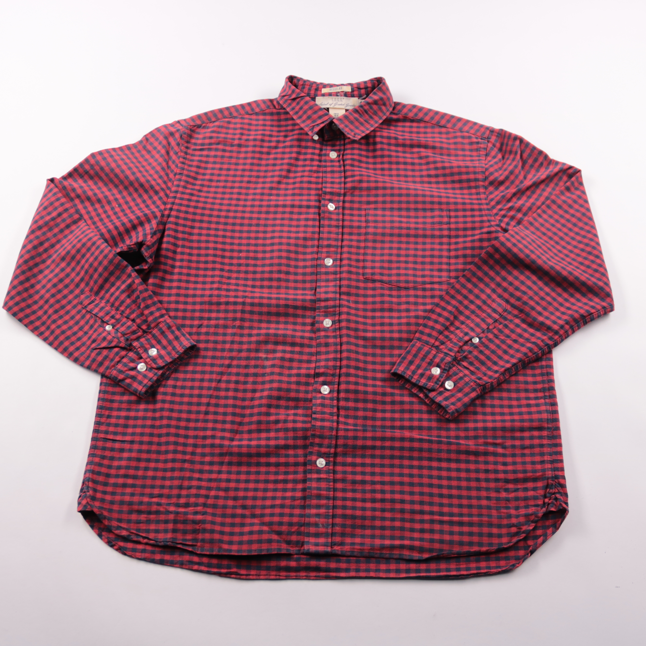Мужская рубашка H&M L.O.G.G. Regular в мелкую клетку красно-синего цвета, с длинным рукавом и нагрудным карманом. Подойдёт для повседневных образов и офиса в стиле casual — с джинсами или чиносами. Хлопковая ткань приятна к телу и хорошо переносит част...