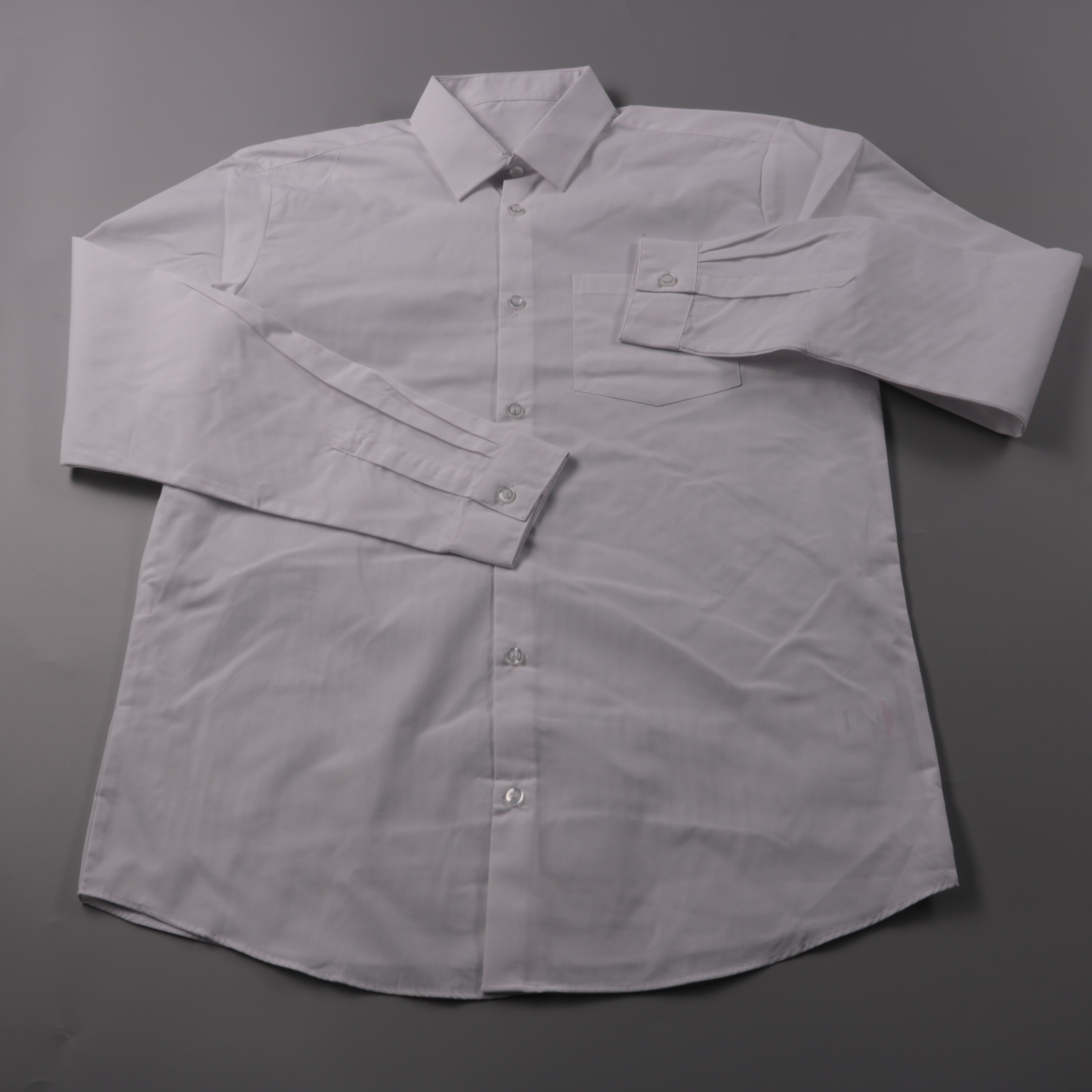 Мужская белая рубашка George с длинным рукавом и нагрудным карманом. Подойдёт для школы, офиса и торжественных случаев, легко сочетается с брюками и джинсами. Практичная ткань с полиэстером меньше мнётся и проще в уходе.
