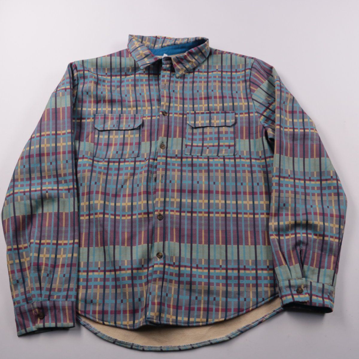 Мужская рубашка в клетку с двумя нагрудными карманами и застёжкой на пуговицы. Подойдёт для повседневной носки в межсезонье, хорошо сочетается с джинсами и чиносами. Практичный плюс — плотная ткань и карманы для мелочей.