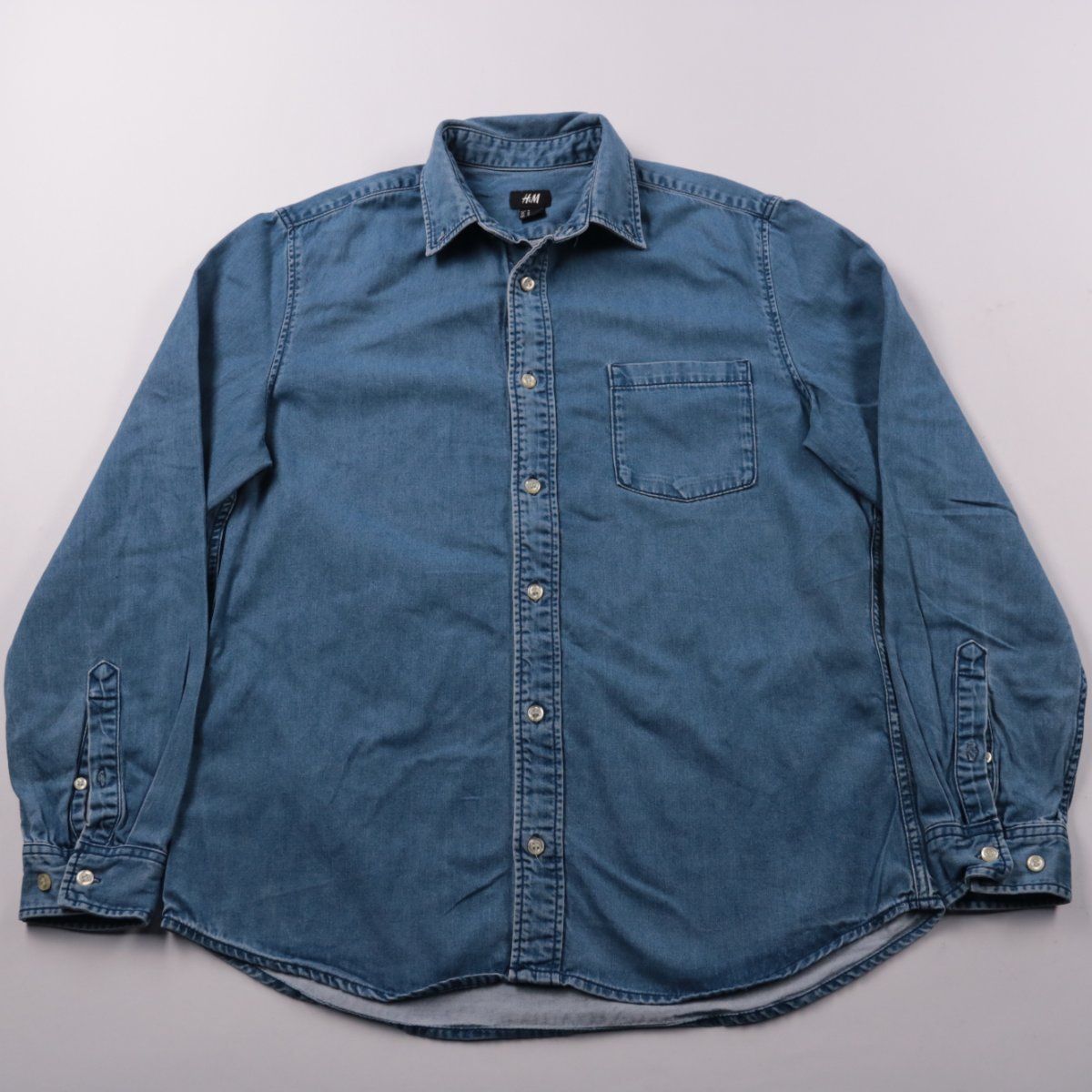 Мужская джинсовая рубашка H&M из плотного хлопка, с длинным рукавом и нагрудным карманом. Подойдёт для повседневных образов и как лёгкий верхний слой в прохладную погоду. Деним практичный и хорошо держит форму.