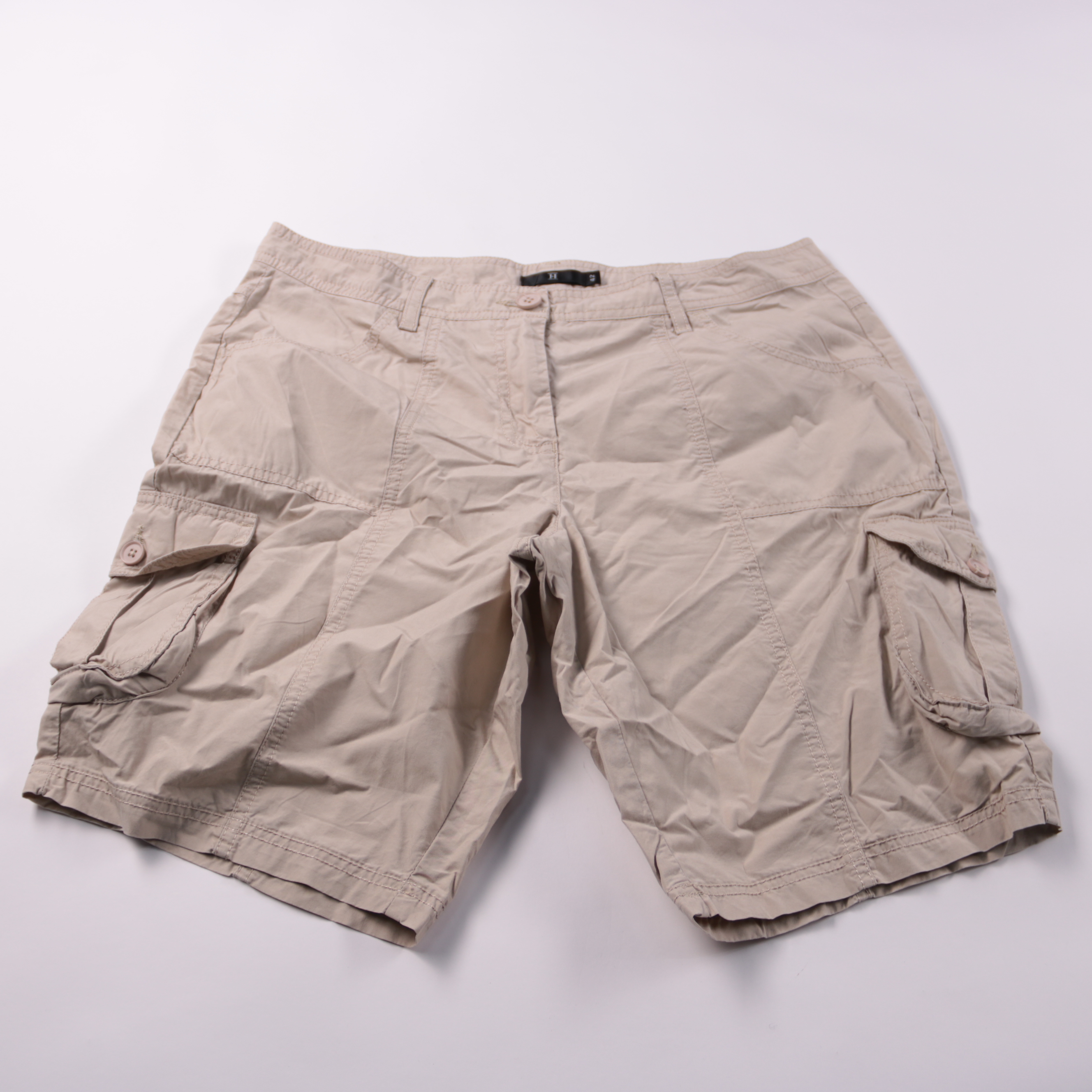 Мужские бежевые шорты-карго House с накладными боковыми карманами на клапанах. Подойдут для лета и отдыха/прогулок, когда нужны удобство и свобода движений. Практичный плюс — вместительные карманы для мелочей.