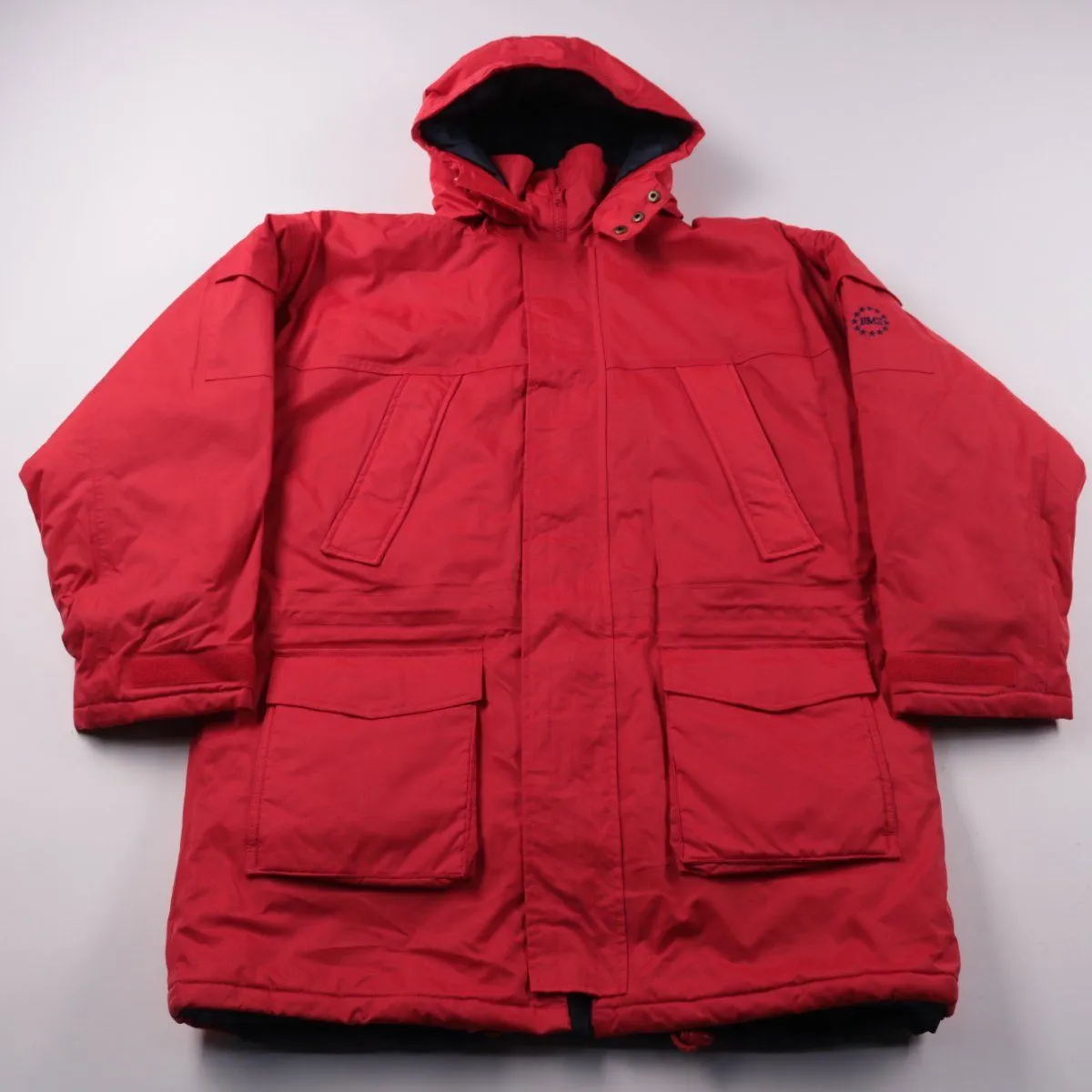 Мужская зимняя парка BMS Alaska-Parka красного цвета с капюшоном и тёплой подкладкой. Подойдёт для прогулок и повседневной носки в холодную погоду, есть большие накладные карманы для мелочей.