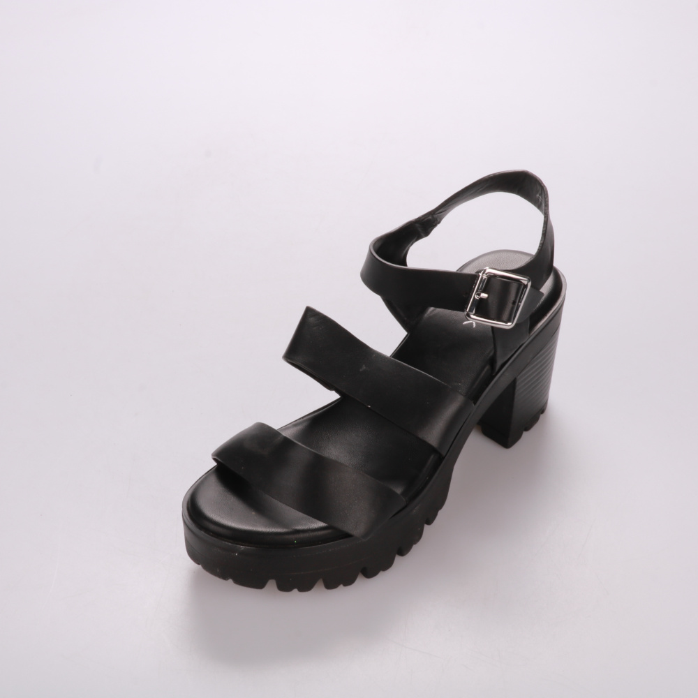 Босоножки Catwalk чёрного цвета на устойчивом каблуке и тракторной подошве, с ремешками и застёжкой-пряжкой. Подойдут для повседневных летних образов и прогулок по городу. Рельефная подошва даёт хорошее сцепление и добавляет устойчивости.
