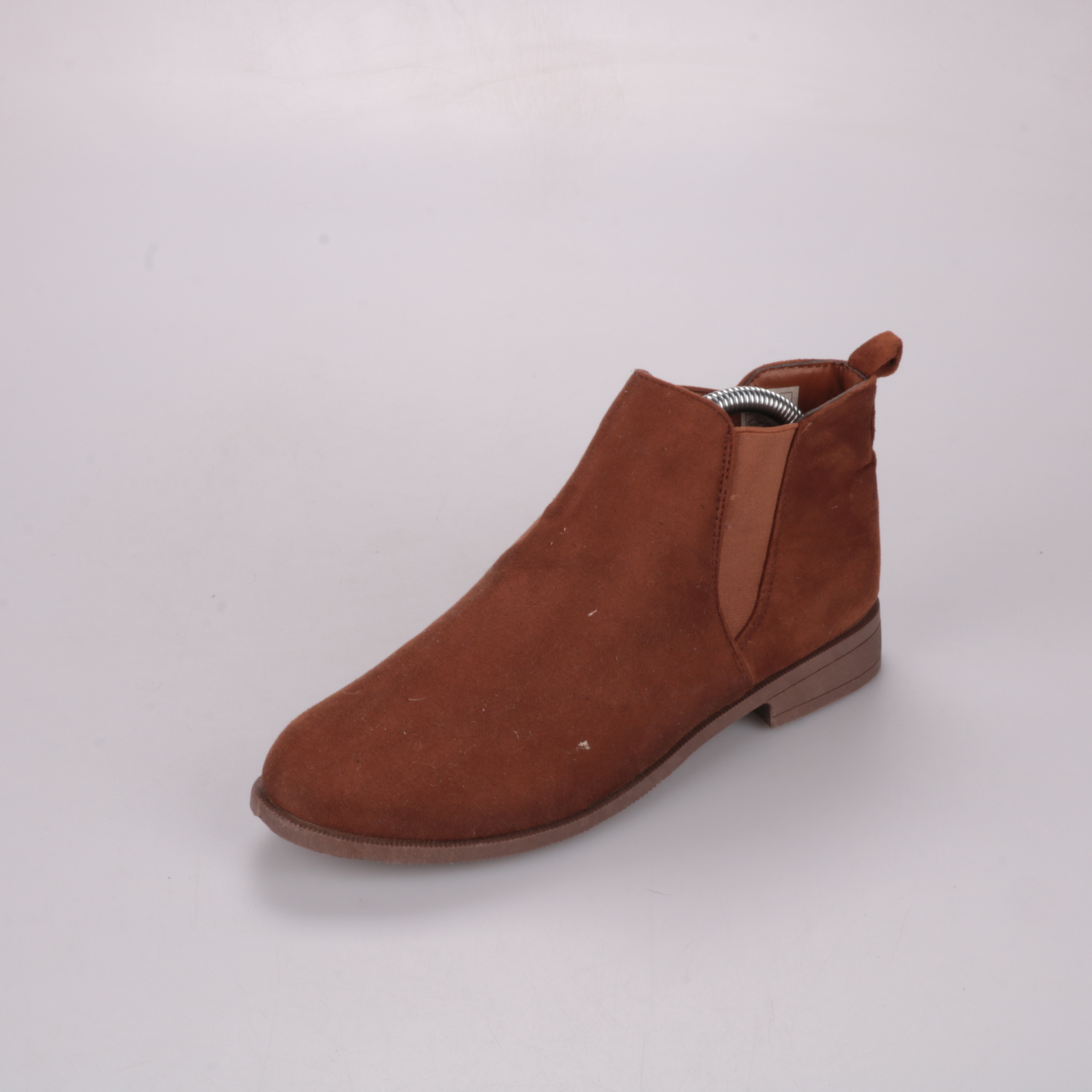 Женские ботинки челси в коричневом цвете, выполнены под замшу, с эластичными вставками по бокам и петлёй на заднике. Подойдут для повседневных образов в демисезон с джинсами или брюками. Удобно быстро надевать и снимать за счёт резинок и устойчивого ни...